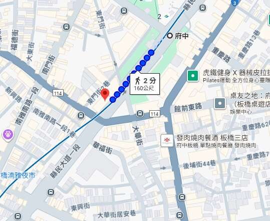 1)府中捷運站步行約2~3分鐘,約160m(google)。