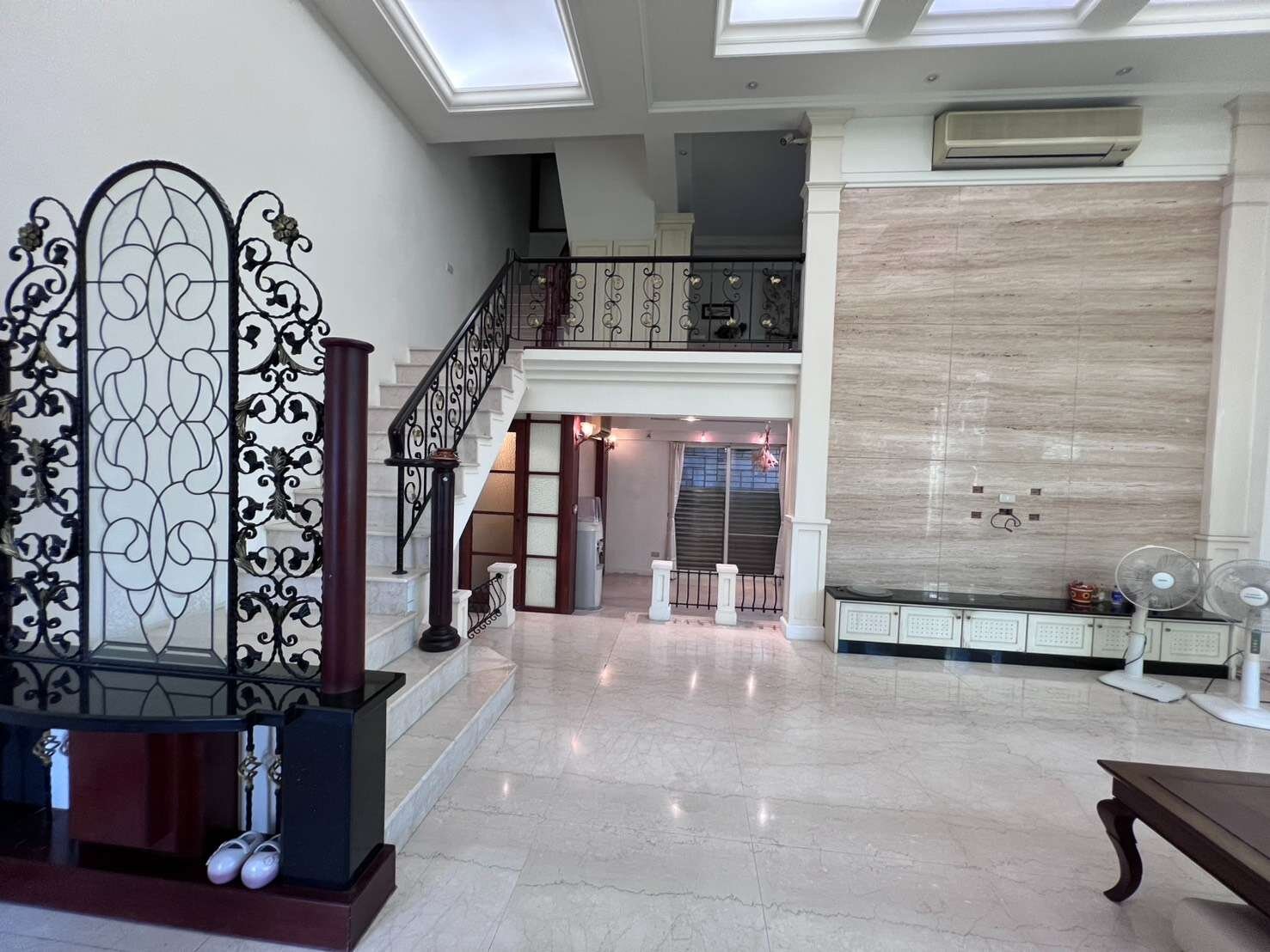 一F挑高5.8米.面寬7米 3間套房+2房.大客廳.氣派非凡 屋況非常漂亮.光線明亮 地下室可停2車+自有車庫1車,共停3車 近陽明商圈.市場.生活機能超強