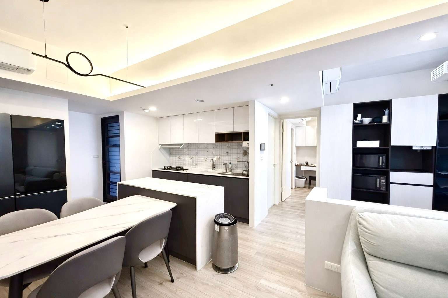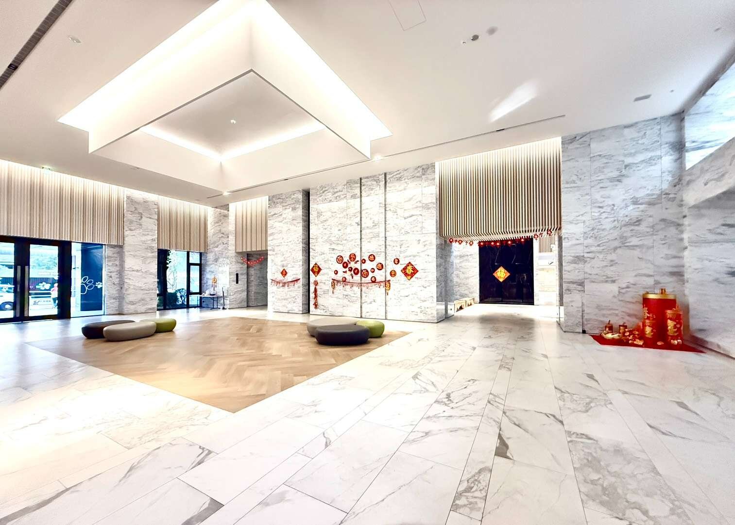 💯挑高氣派門廳、白色簡約藝術廊道、綠意盎然水池景觀中庭