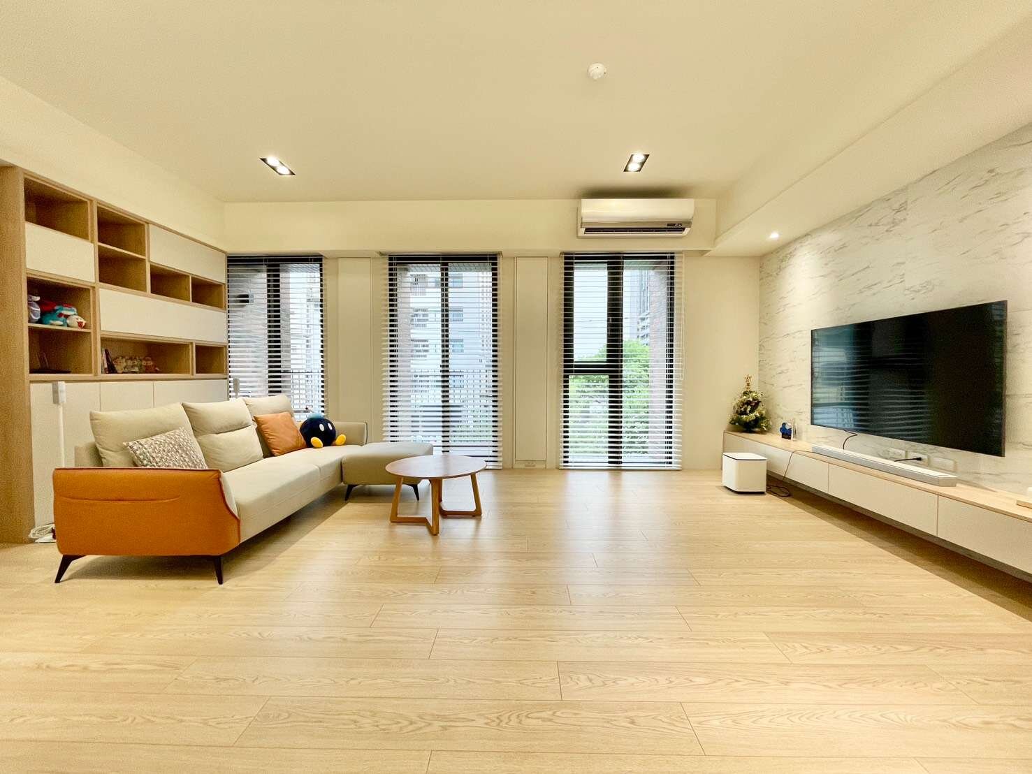 質感裝潢|實木地板溫潤用色,搭配大面落地窗引入自然光線,營造精品生活氛圍。