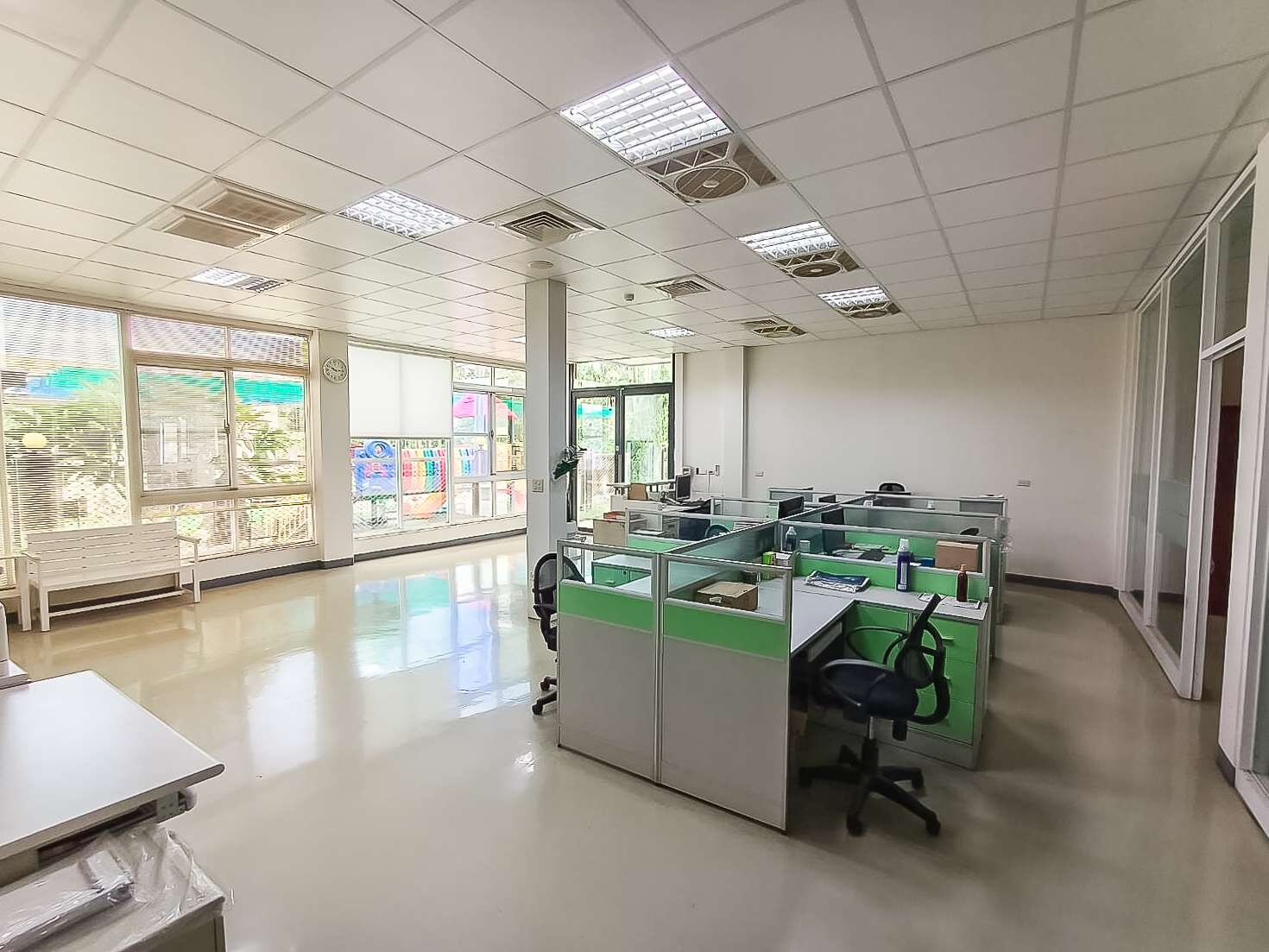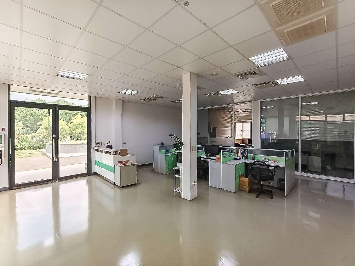2.有貨梯、消防安檢管線、無塵室、辦公室,廠住合一、內有辦公室、會客室、會議室、員工宿舍..