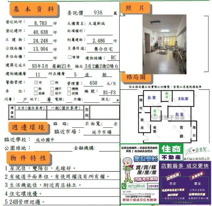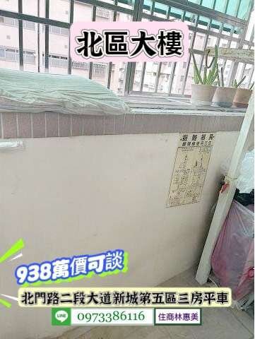 #北區北門路二段大道新城3房平車/售938萬.價可談/林惠美0973386116
