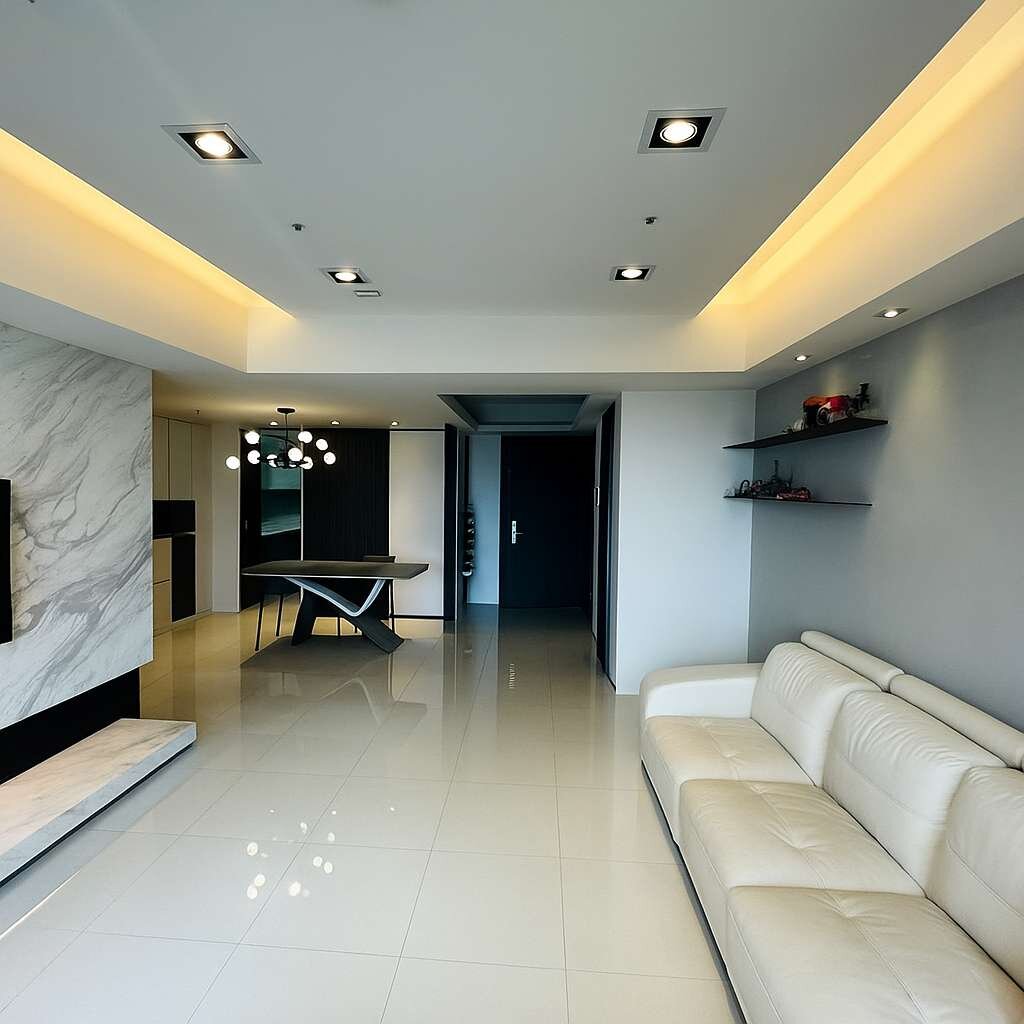 3.室內實坪寬敞,原格局四房改為三房三衛,本戶格局方正無畸零空間,動線舒適實用。