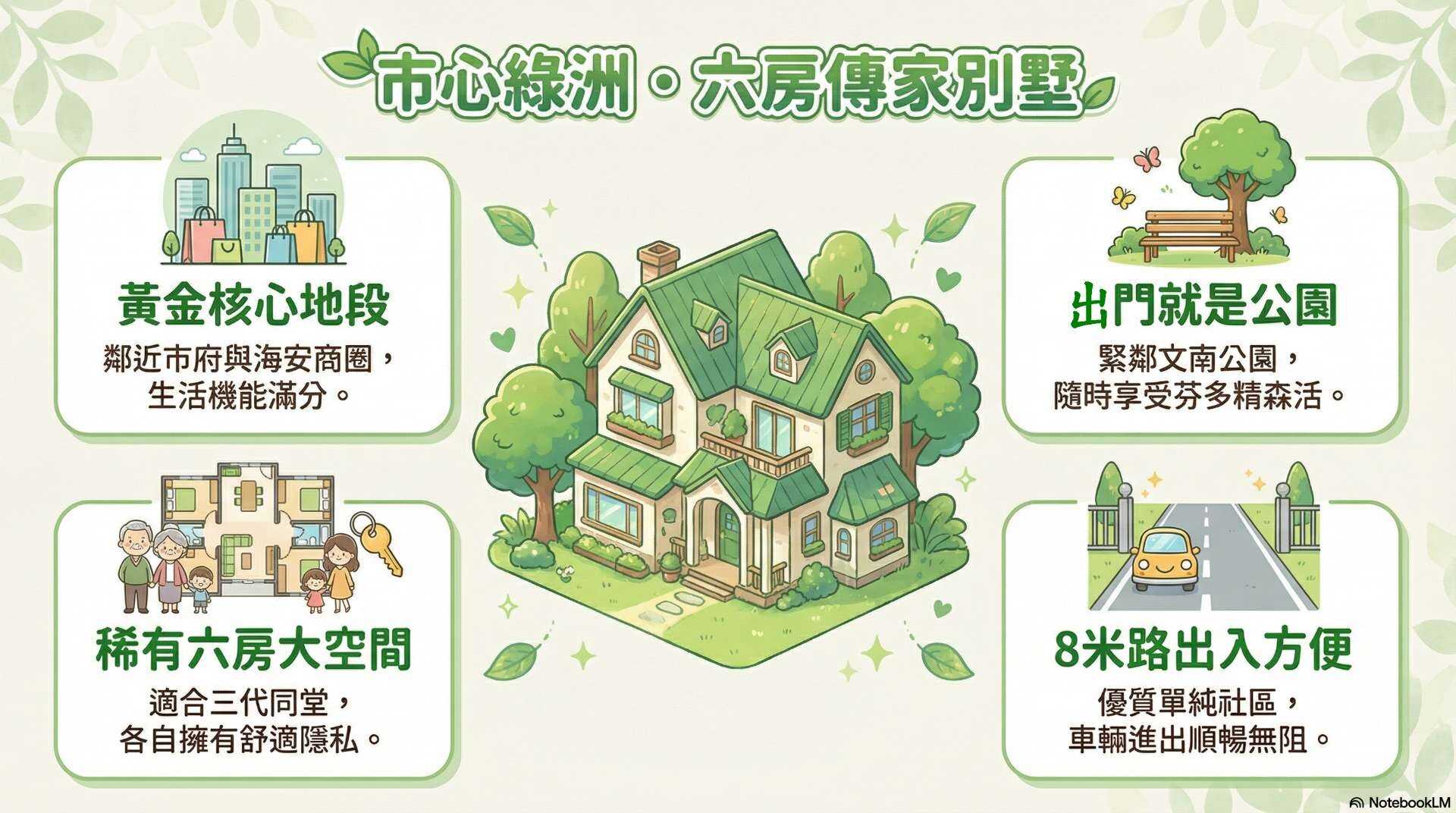 這間位於台南南區的稀有車墅,出門便是文南公園的芬多精,
