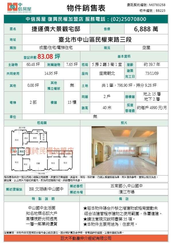 買屋賣屋請指名 中信房屋復興民權加盟店【巨大不動產仲介經紀有限公司】