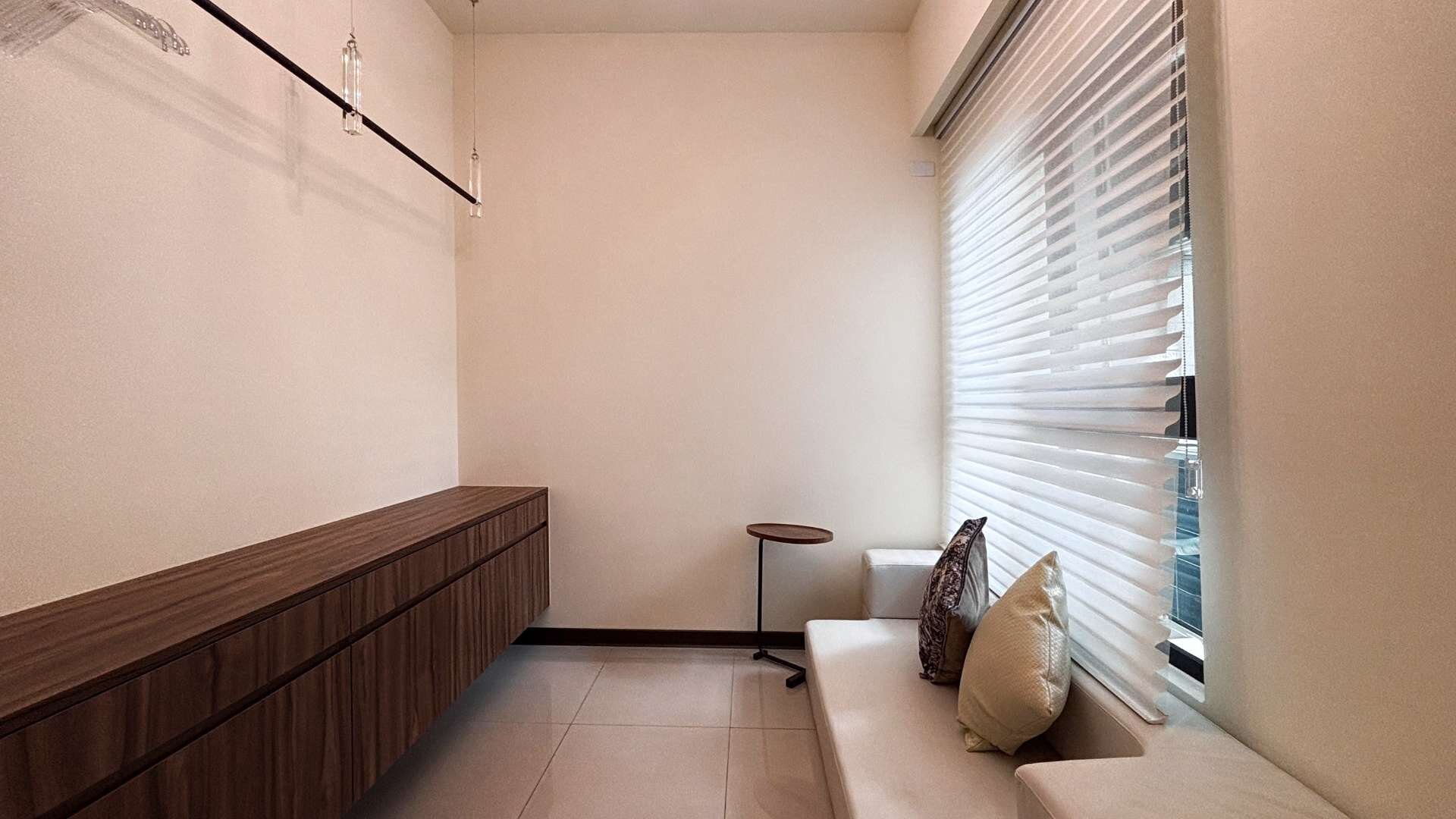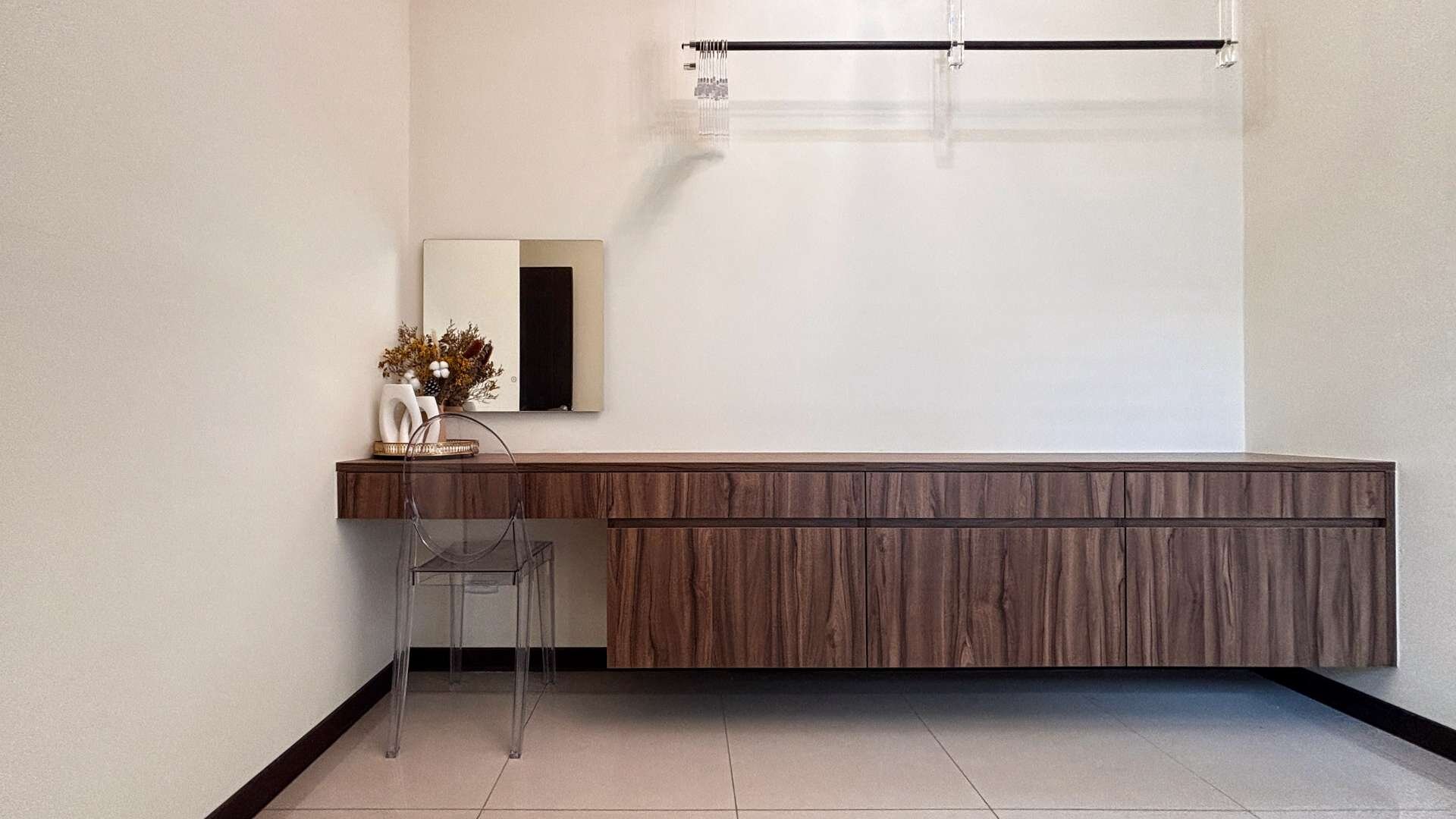 ❤️ 精緻品味系統櫃裝潢,客廳配置升降投影布幕,質感與實用兼具