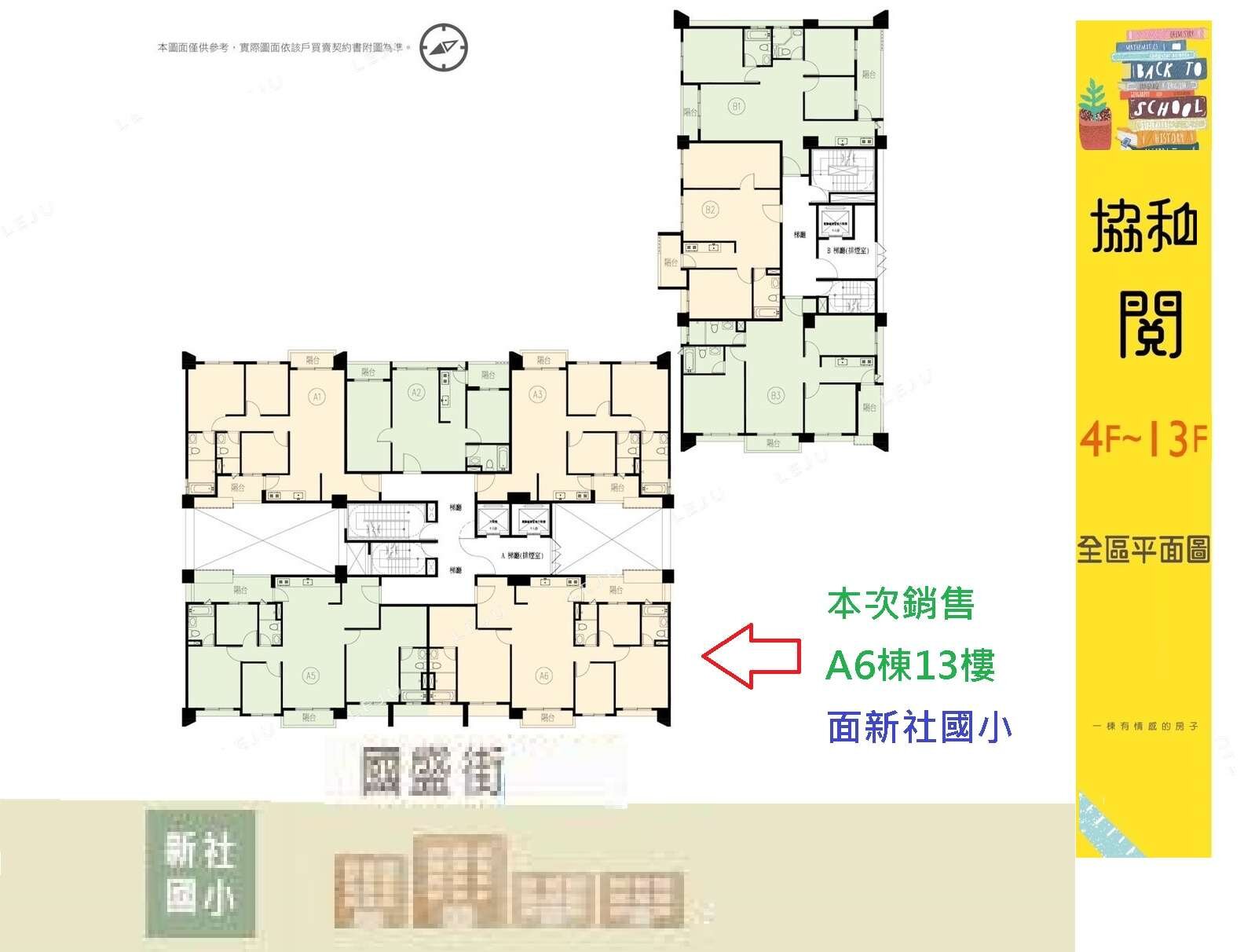 全區99戶,分為兩棟A.B兩棟,本戶在A6棟,一層5戶共用2部電梯,3戶店面,