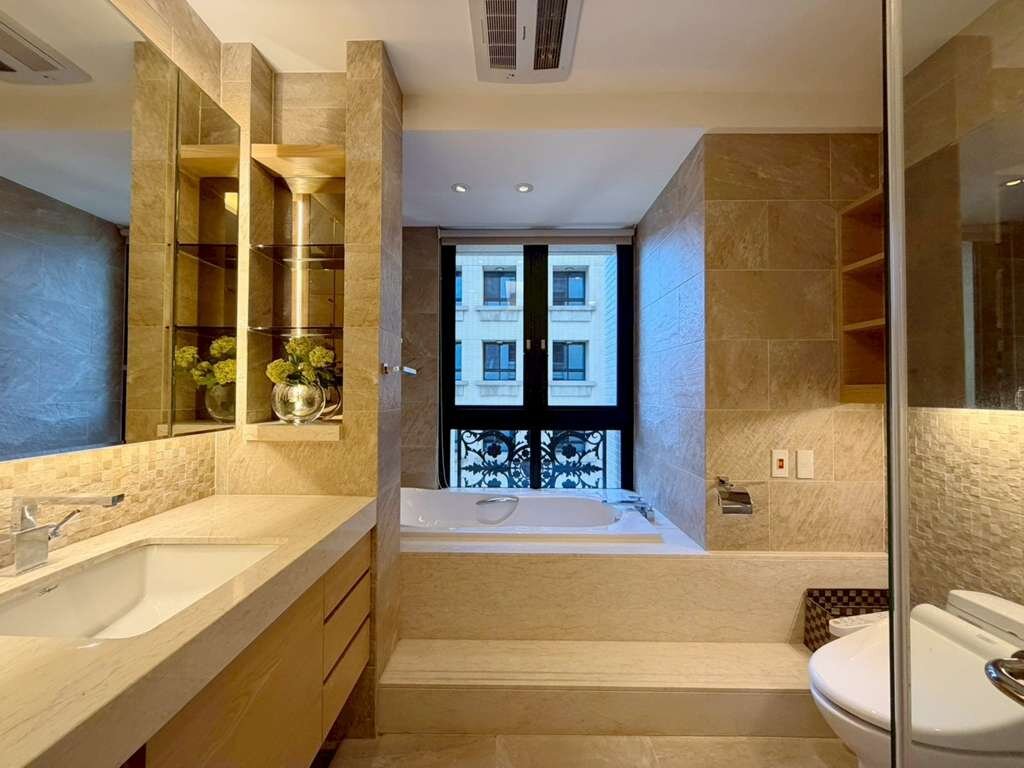 ★屋主重金近雙千萬裝潢設計,規劃三間套房,一間書房也可以當客房,且配兩個雙平面車位,社區擁有管家服務,倒垃圾只需要放在工作陽台的梯間,每天的15~17點,會有清潔人員收理。