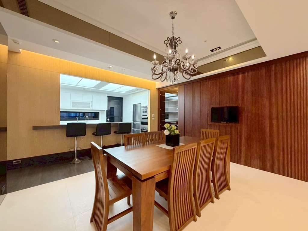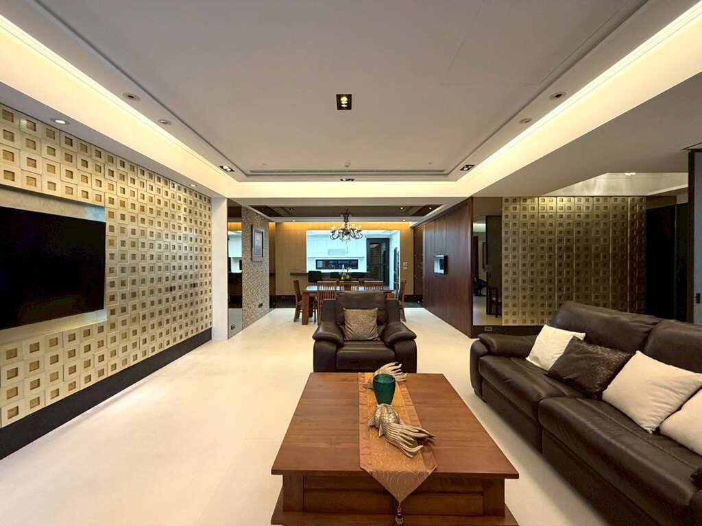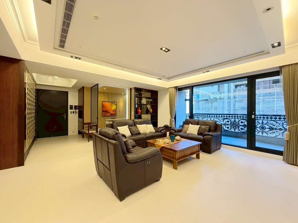 ★公設集中在一、二樓和頂樓,一樓除了門廳外還有一間雋永的書房和會客室。二樓則包括健身房和圖書館。SKYLOUNGE挑高的歐式教堂圓拱造型,搭配三盞來自威尼斯的大吊燈,橢圓形的空間分隔成三個區塊。停車場入口處也擺放1793年的「雍睦堂」匾額,對面即是新光三越、大遠百,是台灣中部最佳的住宅地段。