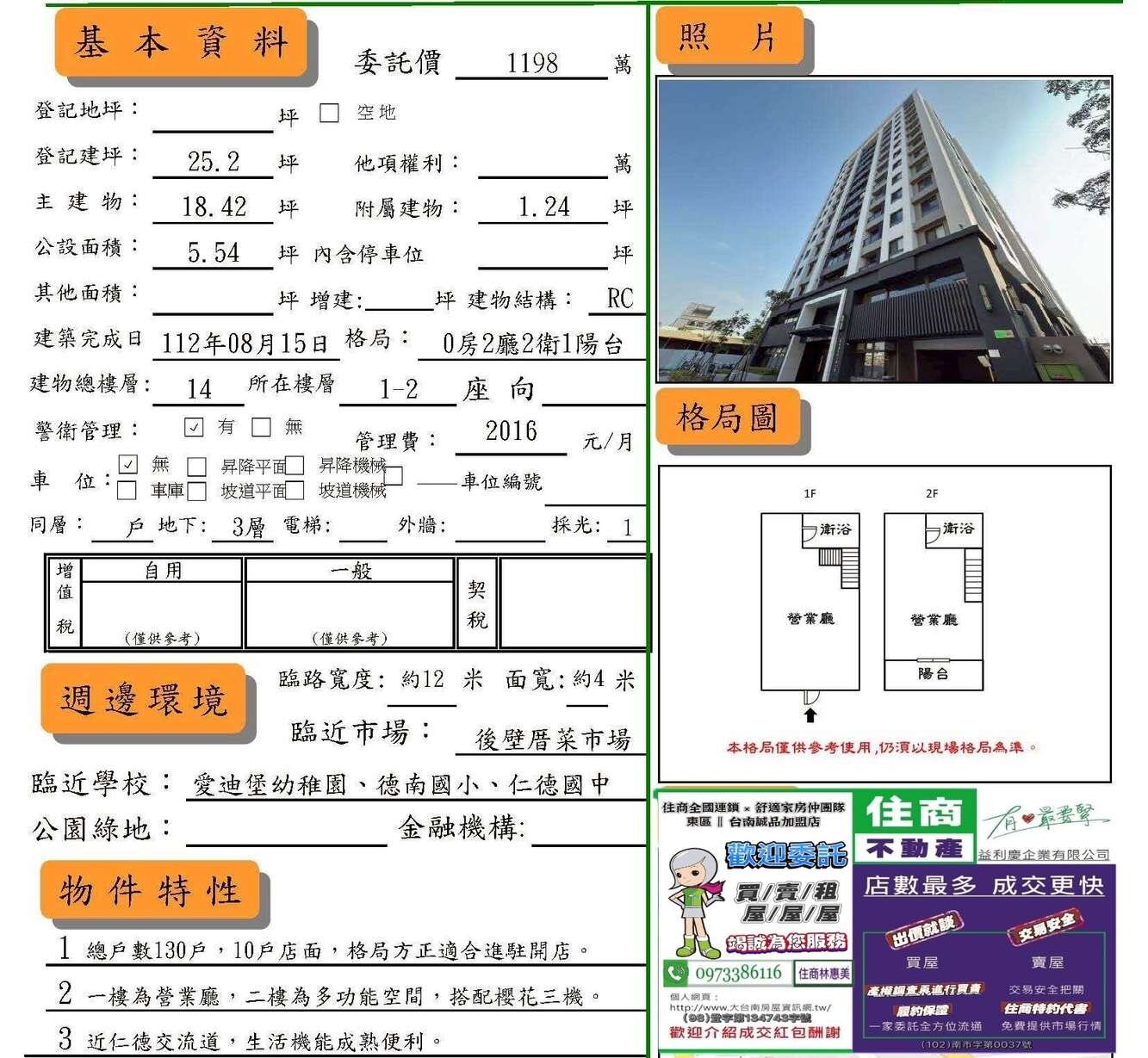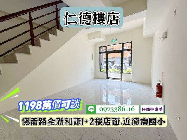 #仁德區德崙路近交流道全新和謙店面1+2樓/售1198萬.價可談/林惠美0973386116