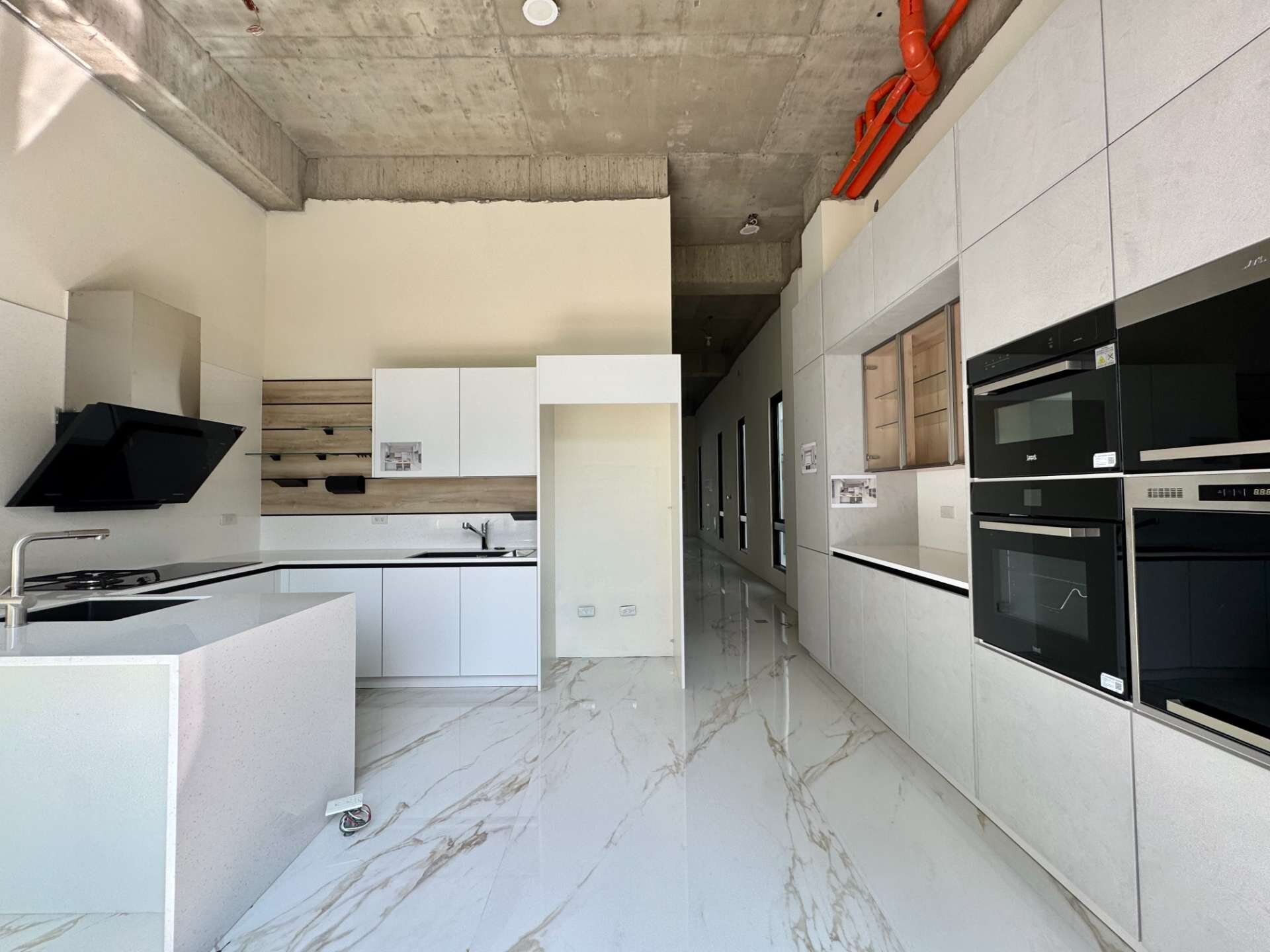 自住高規格建材,廚具使用德國進口高級廠牌,超過210萬,高級盟帝亞百萬電梯,以及德國進口高級廠牌的衛浴設備,浴室加舖丹麥進口特殊地熱裝置,比一般建商使用品牌多出一倍費用