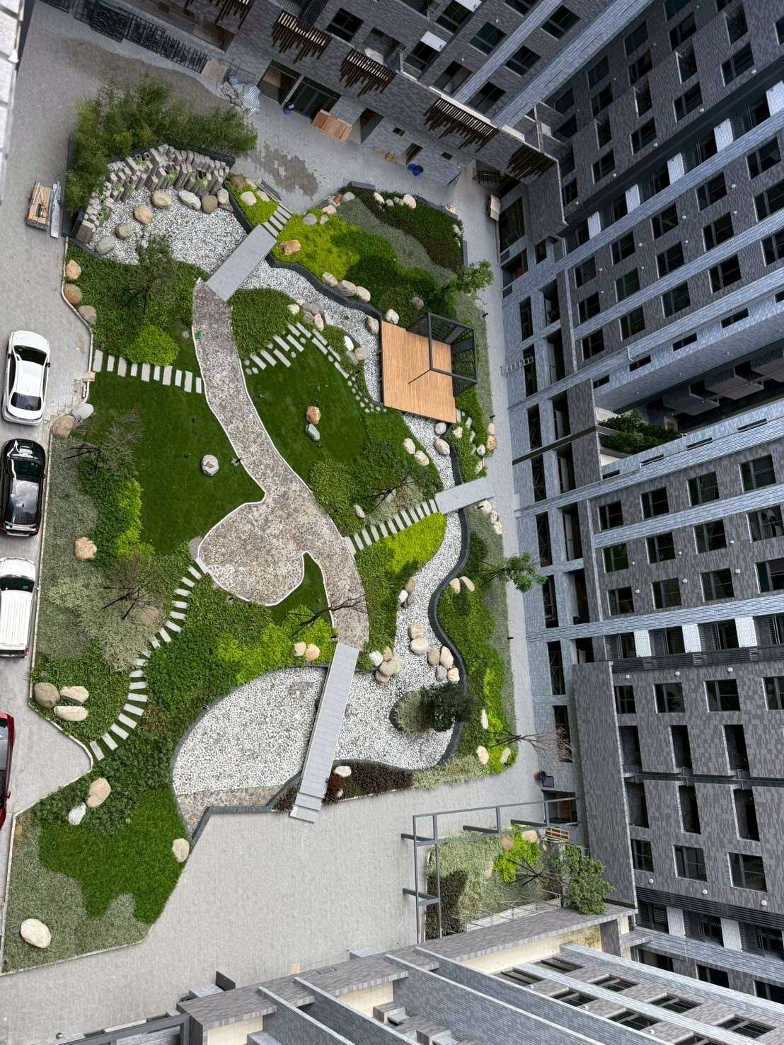 朝南面中庭沒有灑水管線