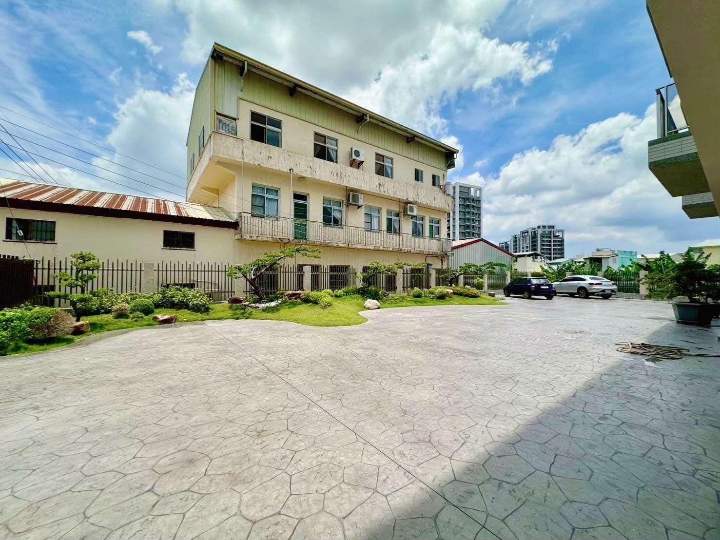 ✅前院採用四分鐵加固,再用重磅水泥鋪平造景,空間大到無法想像,可停大貨車。