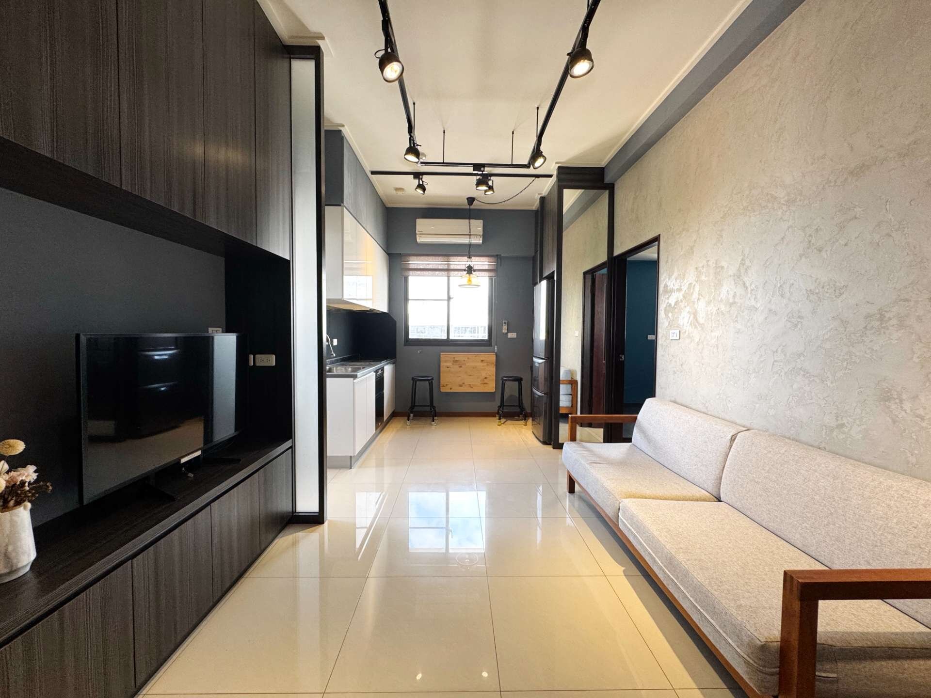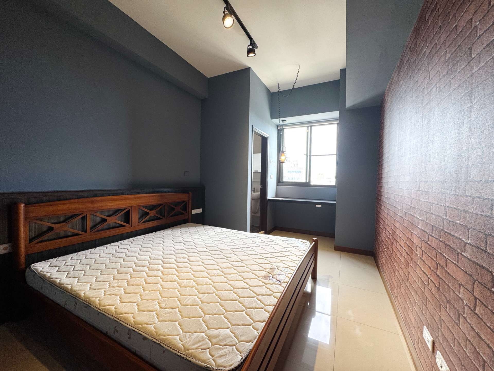 ⭕️摩登世紀No.2社區稀有邊間戶,三面採光通風良好,套房窗戶面公園綠意盎然,室內工業風裝修擺飾,