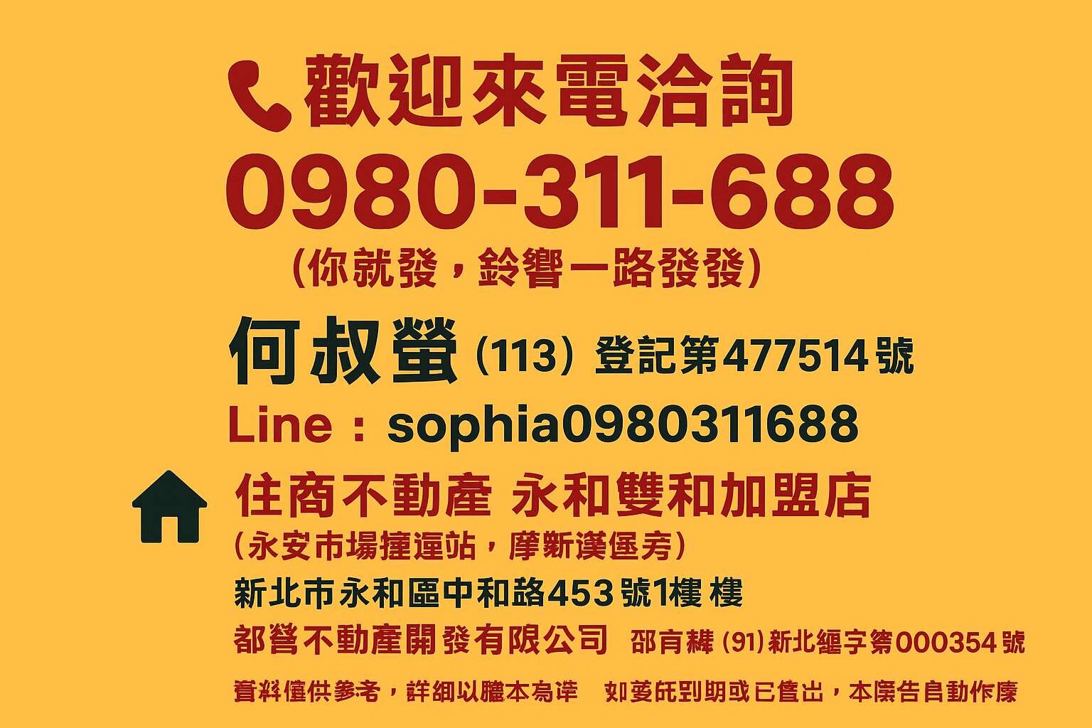 經紀人:邵育緒(91)新北經字第000354號