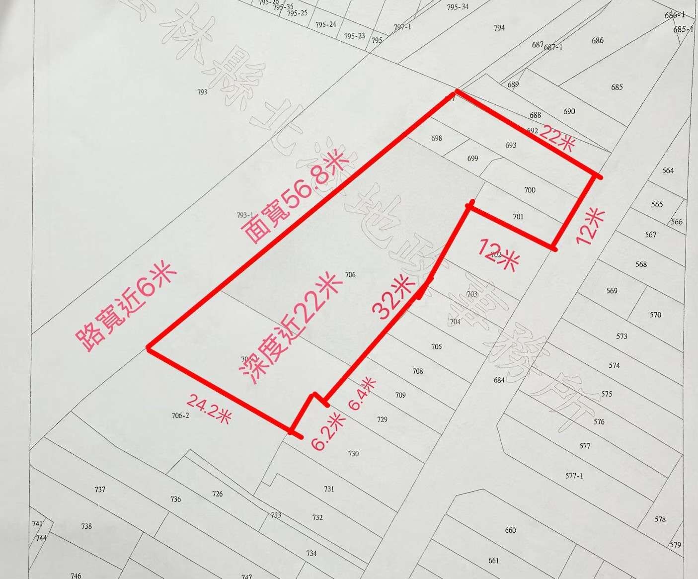 🚗 面寬 56.8米 × 深度 22米