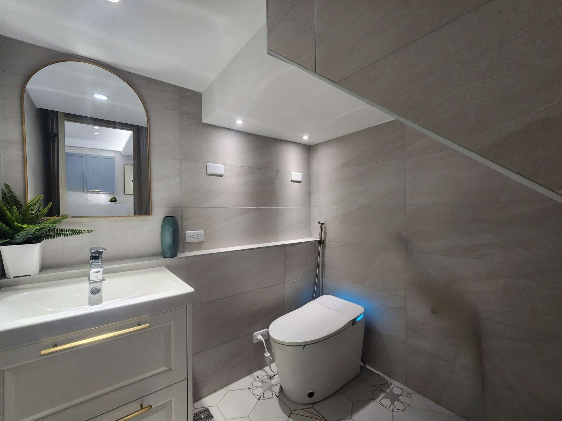 一樓後方陽台、車庫、孝親房衛浴