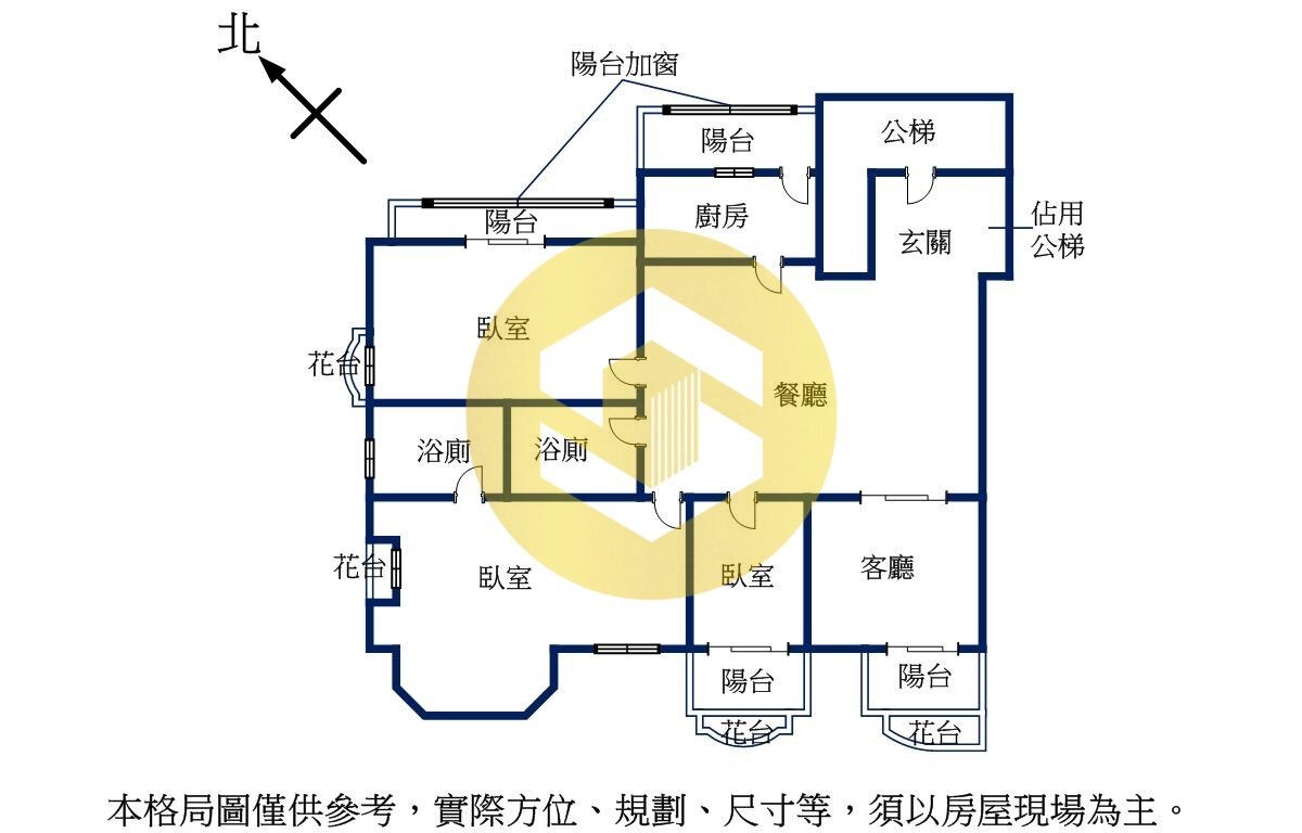 3.本頁格局圖,未依ㄧ定比例繪製,與實際仍有差距,須以房屋現況為主。