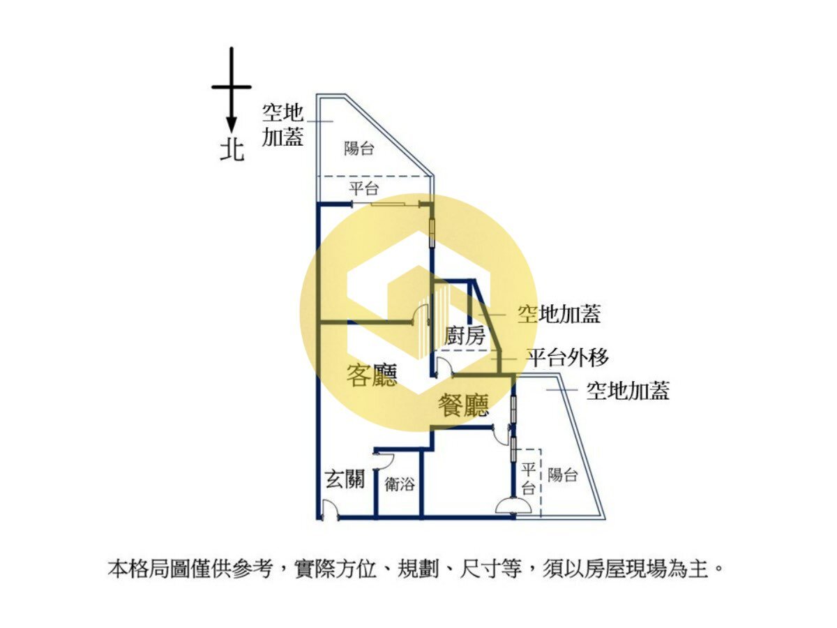3.本頁格局圖,未依ㄧ定比例繪製,與實際仍有差距,須以房屋現況為主。