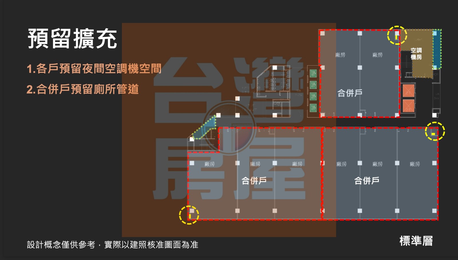 當層除預留給排水設計,亦預留空調擴充機房