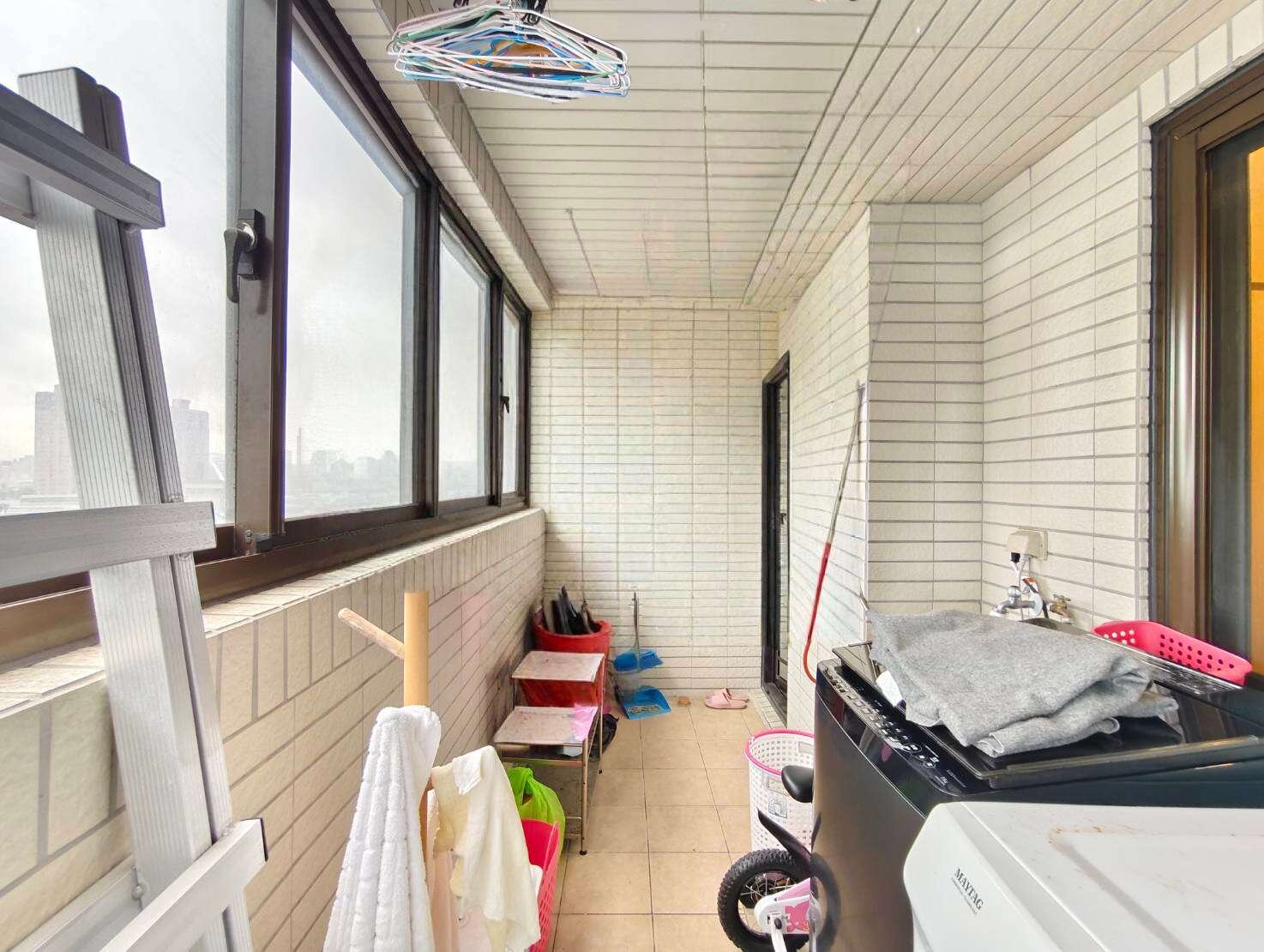 超大後陽台,可同時放置洗衣機、烘衣機,晾曬與收納空間充裕