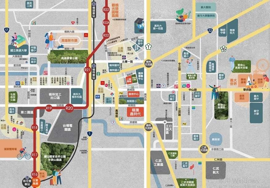 1.本案位於楠陽國小對面 2.楠梓車站商圈食衣住行沒煩惱 3.格局方正採光優稀有兩房兩衛 4.近高速公路.車站.省道交通超便捷 5.公設非常完善交誼廳.閱覽室.健身房.KTV.中庭花園
