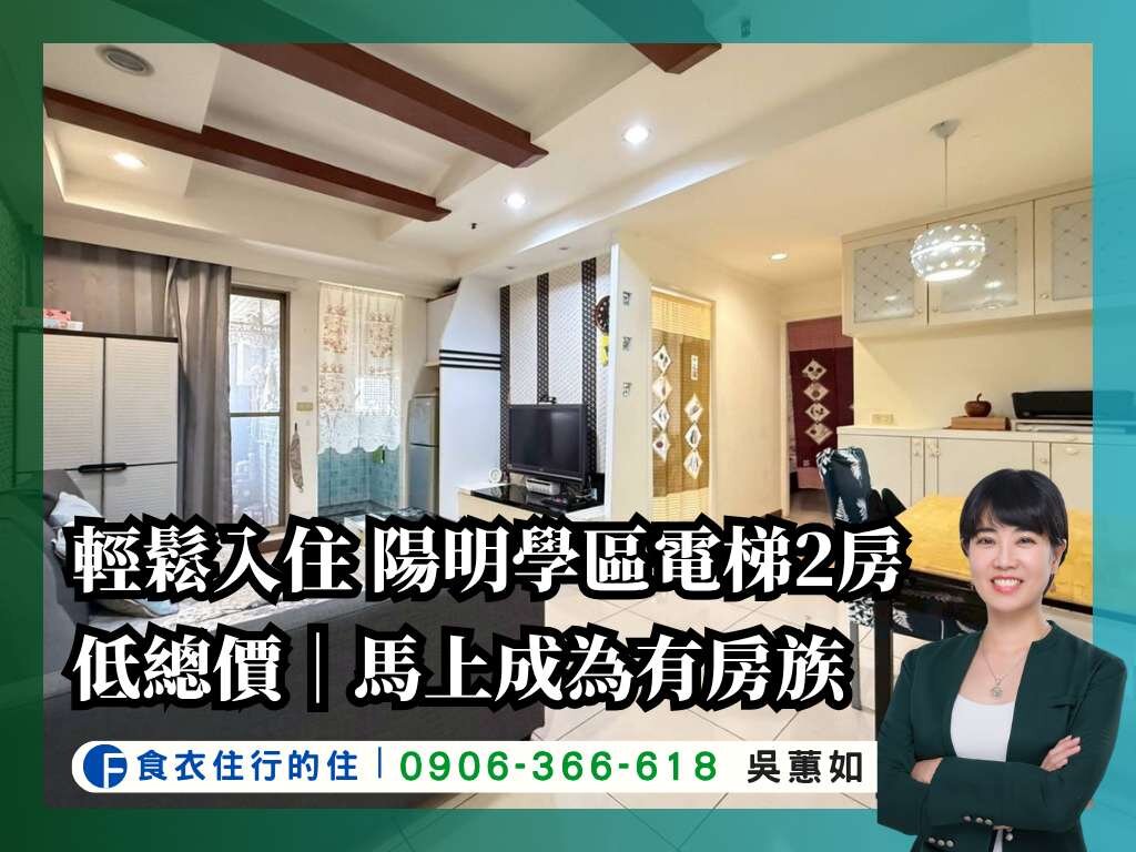 低總價輕鬆買到房|陽明學區電梯2房平移車位