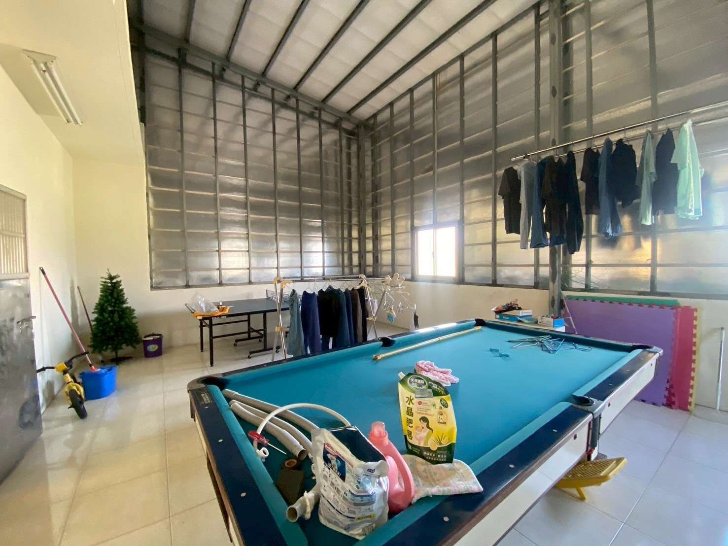 • 農舍建物每層30坪,3樓露臺增建鐵皮屋,一樓環繞建物增建採光遮雨棚