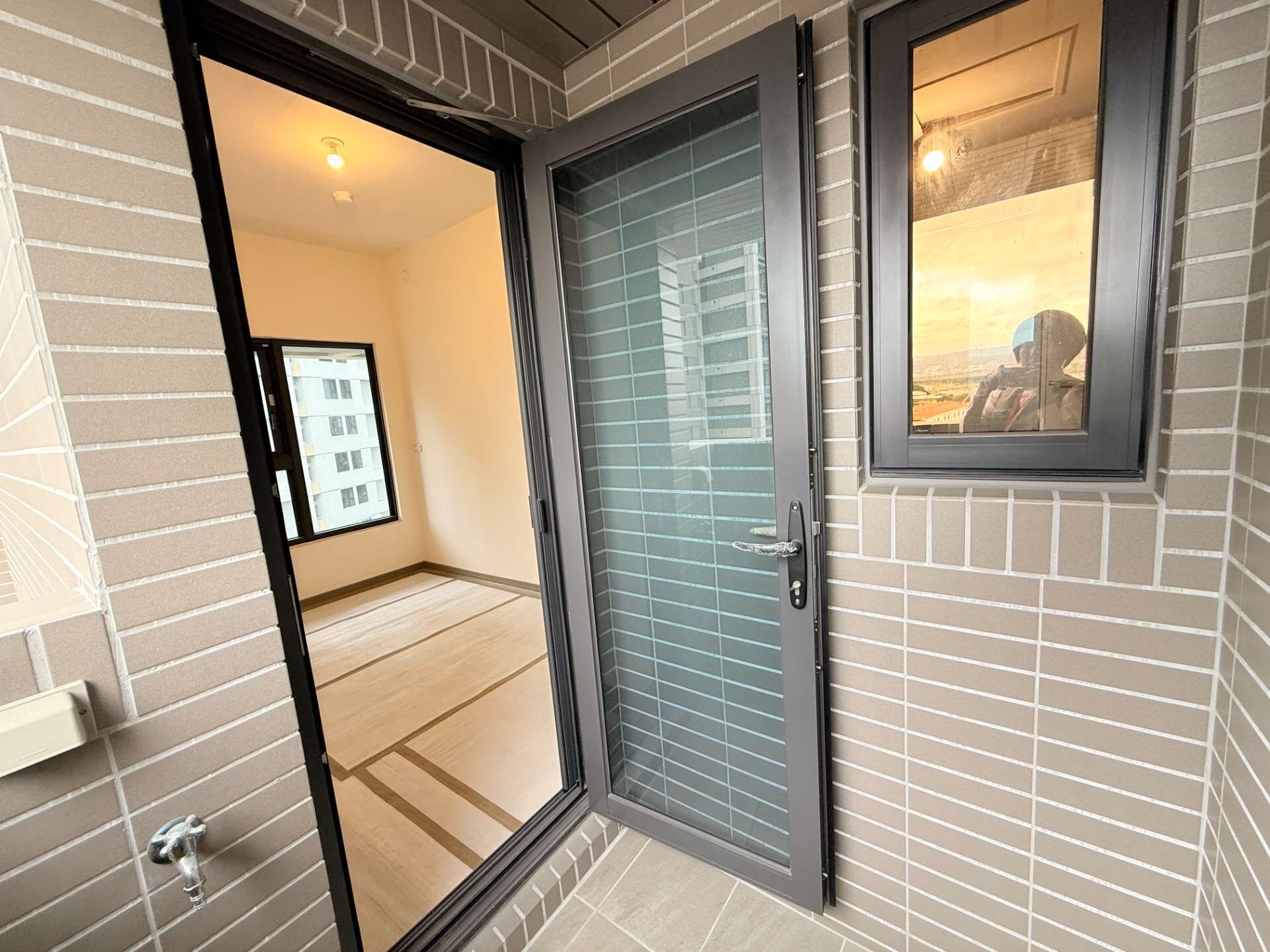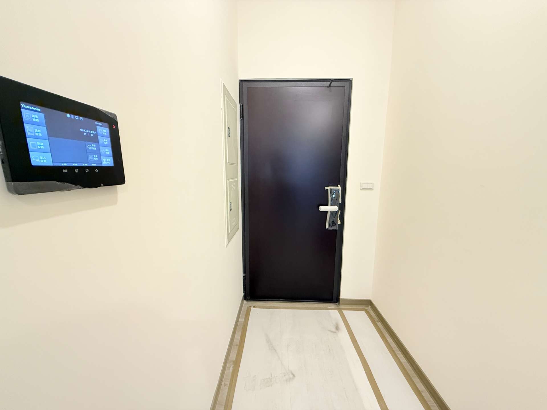 大門搭配電子鎖可指紋,密碼或磁卡開門。