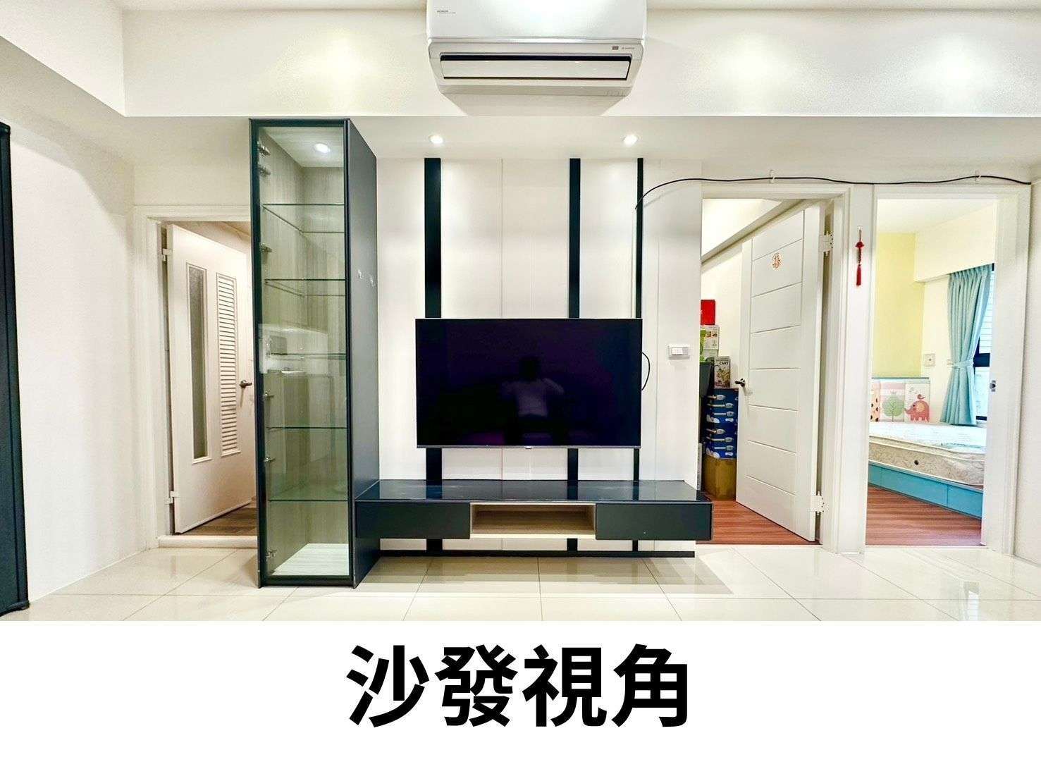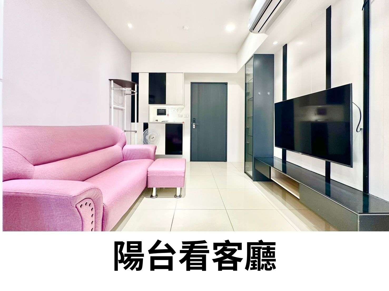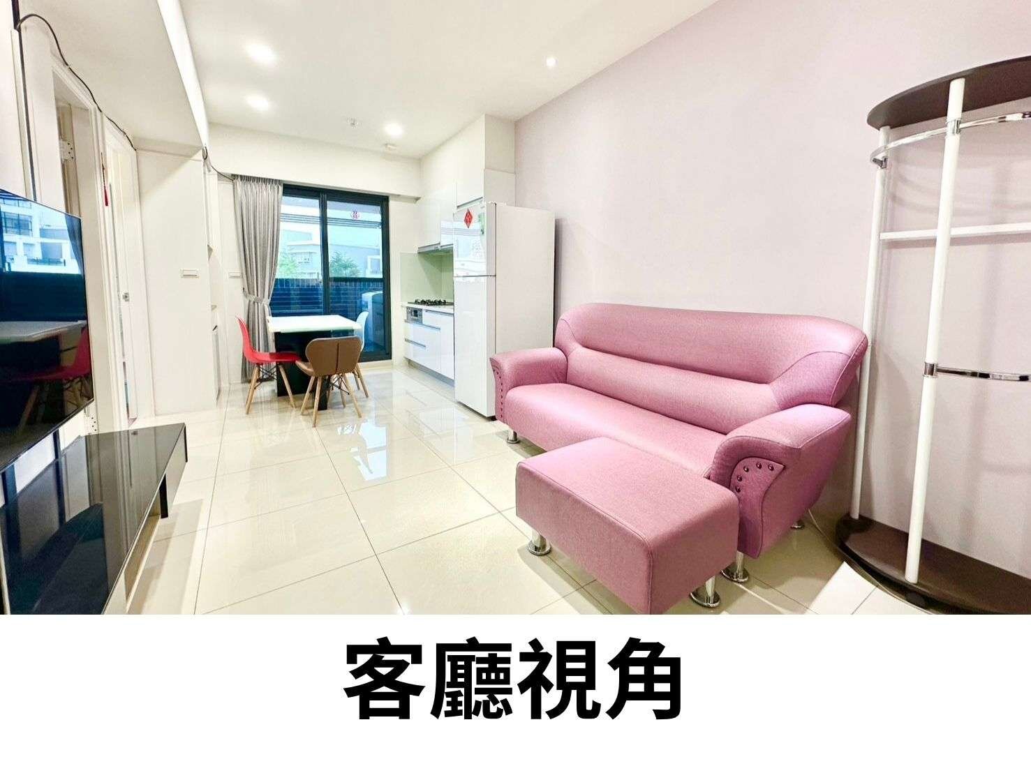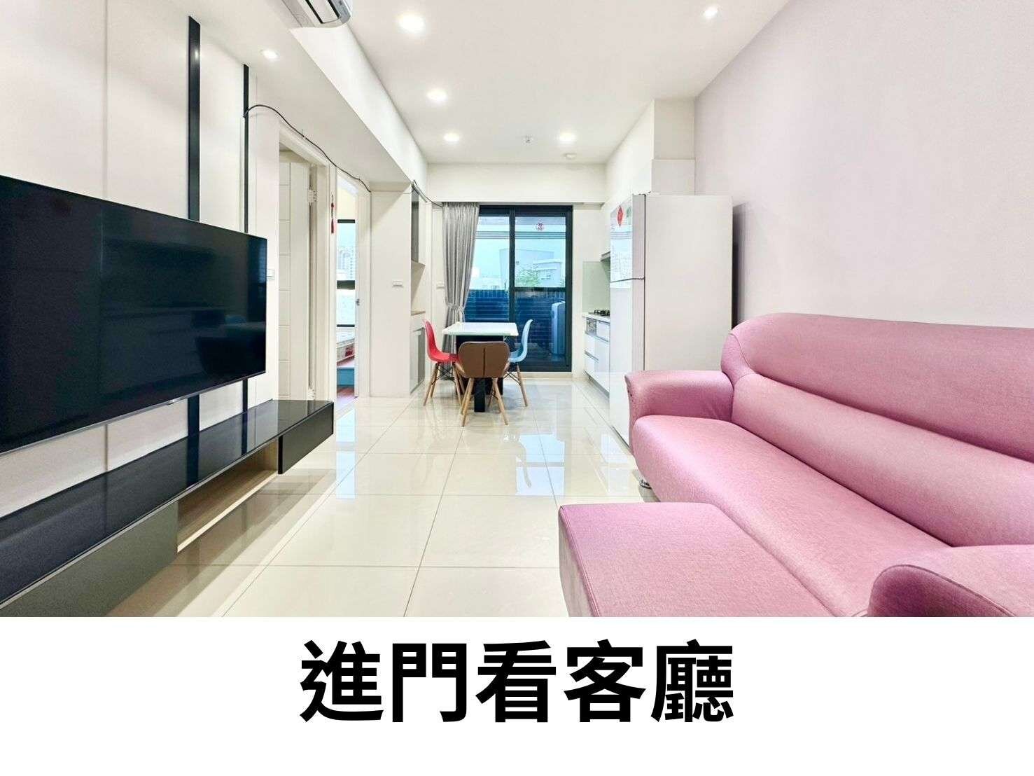 走進家門的那一刻,你會先看到溫暖的採光落在客廳的白亮磁磚上,