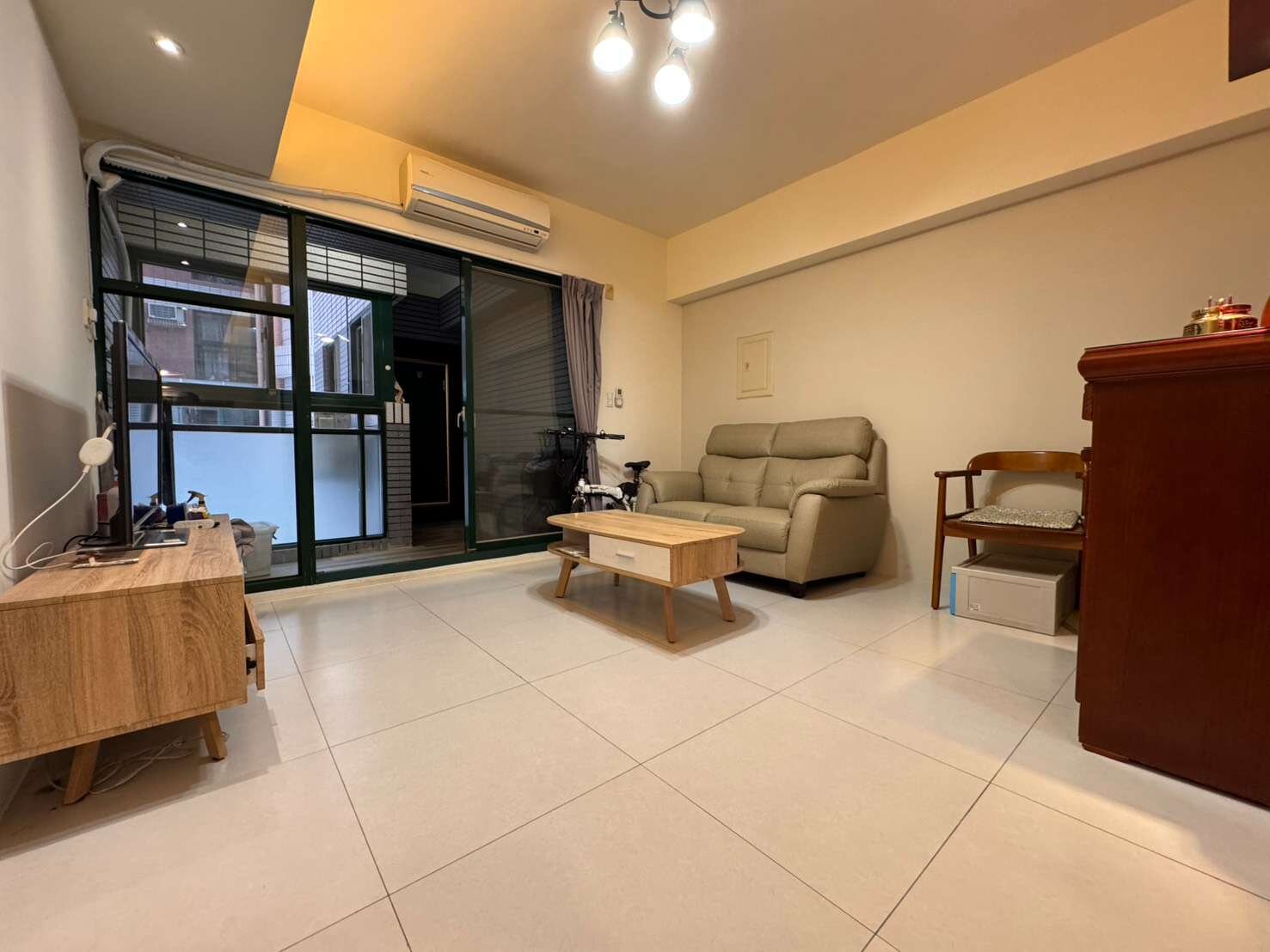 社區中型戶數,管理輕鬆住戶單純。精裝三房,免整理即可入住。稀有陽台進出,鞋櫃好去處