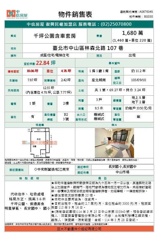買屋賣屋請指名 中信房屋復興民權加盟店【巨大不動產仲介經紀有限公司】