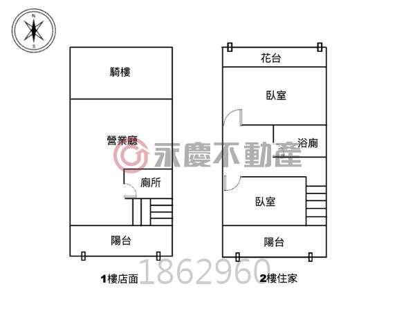 一樓店面+二樓居住空間,實際使用約38坪,邊間採光佳、格局方正,動線好運用。