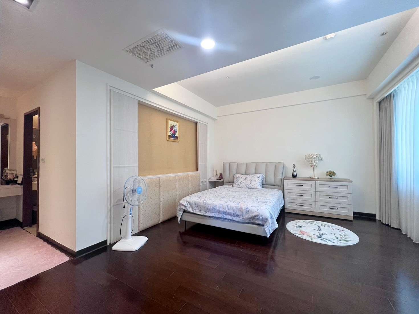 這間標準四房格局,擁有 近乎全室的大面採光,不管是早上煮咖啡還是夜晚小酌,光線與空氣總能替生活添上一份儀式感。
