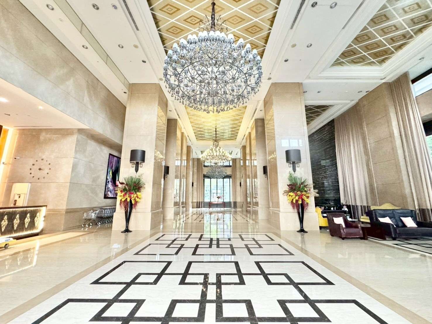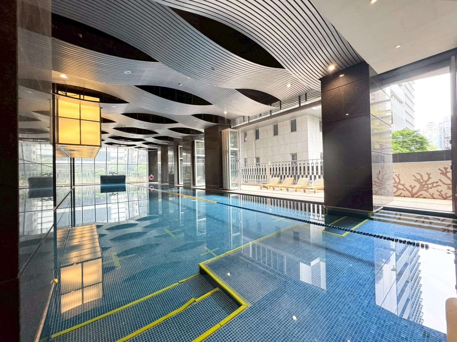 ■基地退縮二十米形成寬敞廣場,門廳挑高大器,並擁有超過兩千坪以上的豐富公設,包括泳池、宴會廳、三溫暖、兒童遊戲區與多功能休閒區,住起來舒適又有質感。