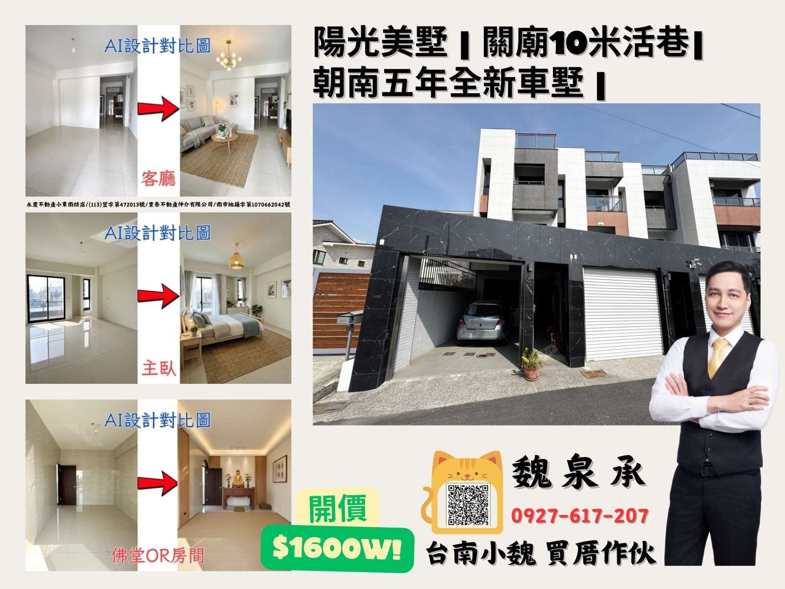 專)台南小魏🔥關廟10米活巷朝南陽光五年全新車墅