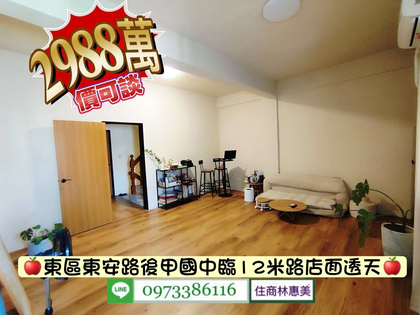 東區東安路後甲國中臨12米路店面透天/售2998萬.價可談/林惠美0973386116