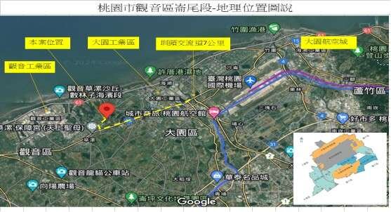 1. 東側臨大園工業區約6.0公里,西側近觀音工業區 4.6 2.5公里有利產業供應鏈需用地設廠。 2. 國道 ② 圳頭交流道 7.0公里,61快速道路2.6公里, 機場9.5公里。 3. 臨8M路保障路二段,基地內10M道路 4. 本區唯一出售。