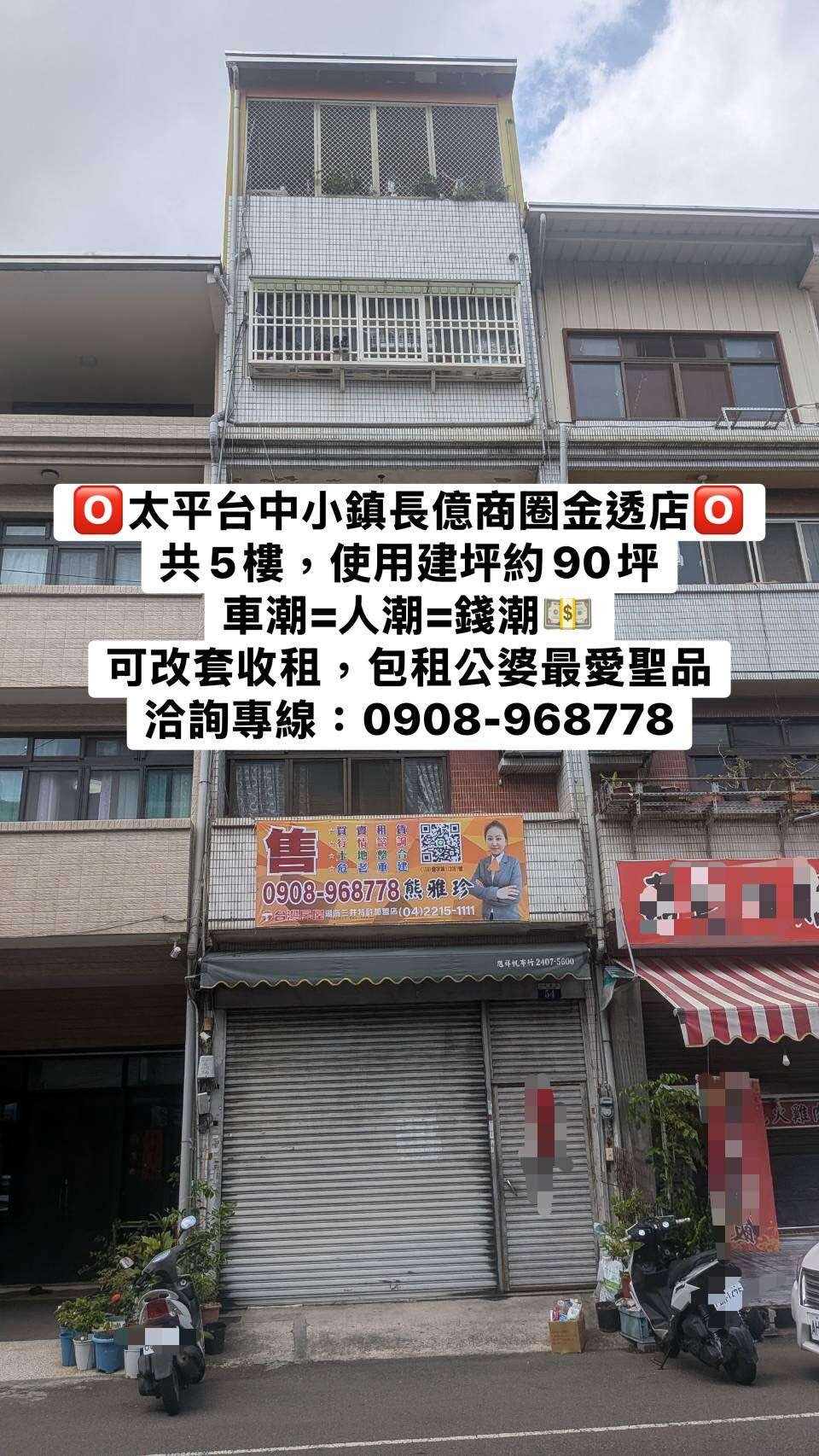 小珍珍/珍心推薦:0908-968778 長億商圈大路邊吃市金店面 長億重劃區旁,人口密集處 商家林立,完整學區 生活採買及交通便捷 增建到滿,使用建坪約92坪 店住合一,稀有商圈透店釋出