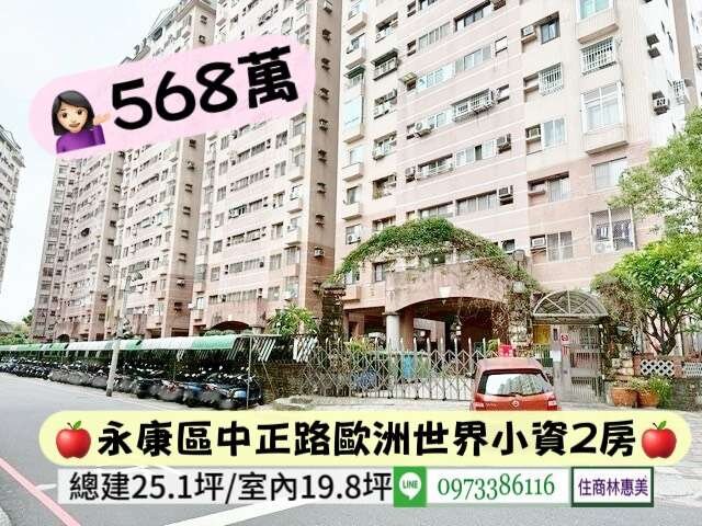 #568萬買永康區中正路歐洲世界小資兩房/住商林惠美0973386116