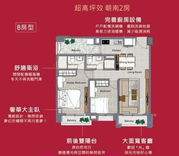 格局:2房2廳2衛3陽台