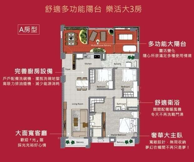 格局:3房2衛2廳4陽台