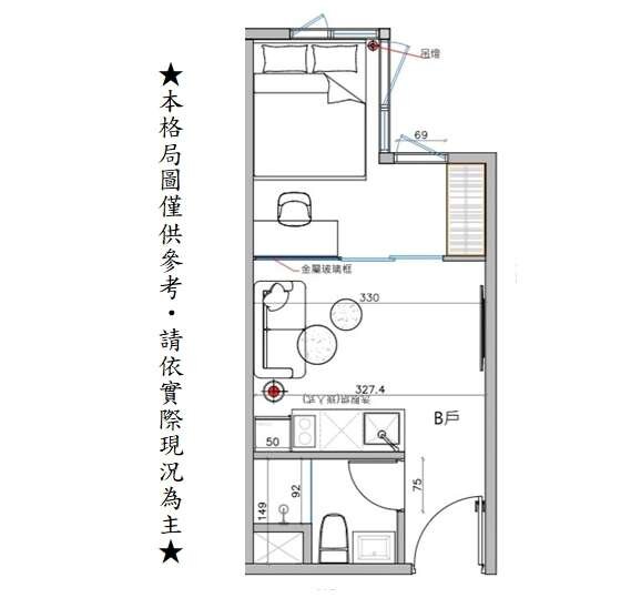 1.照片僅反應使用現況,刊登內容的法定用途與現況使用內容不同時,用途以使用執照或謄本記載為主.2.本頁面所刊登照片若有室外照而非物件本身時,單純是以房屋標的附近街景照片,僅提供參考示意用.3.本頁面所標示屋齡資料若與實際屋齡有所誤差,乃因地政機關資料及建物權狀登記皆無標示建築完成日,為配合591系統刊登廣告,必須登記屋齡之規定,事故以地政謄本登記房屋第一次登記日期或建物成果圖登載日期資料所粗估算,並非確切實際屋齡,實際屋齡以地政機關登載計算為準.4.本廣告刊登格局圖,係未依依定比例縮小繪製之概繪圖,與實況仍有差距,其方位,格局,形狀等,仍需以房屋現場為準.