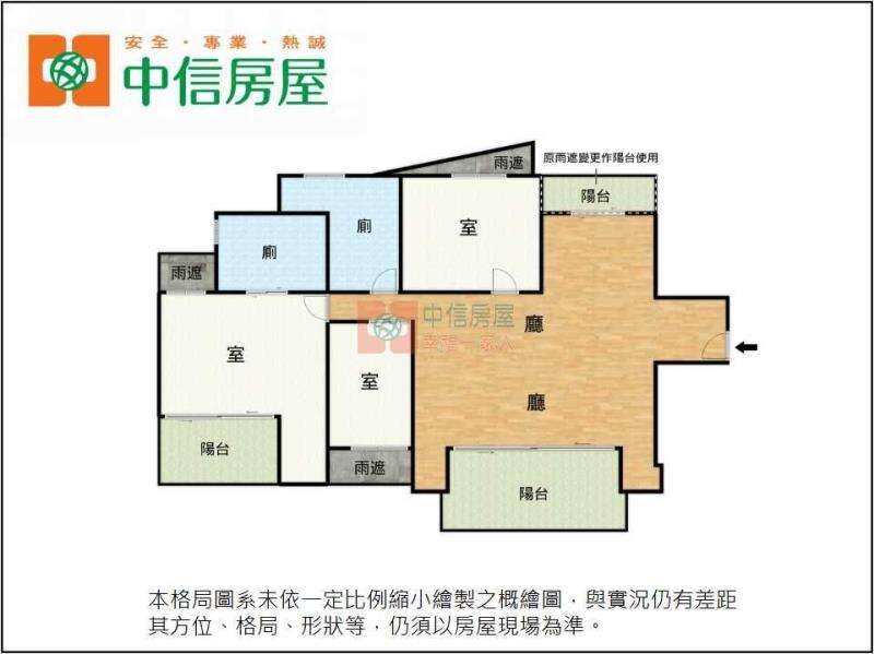4. 本頁面若有刊登格局圖,係未依一定比例縮小繪製之概繪圖,與實際狀況有差距時,以房屋現況為準。