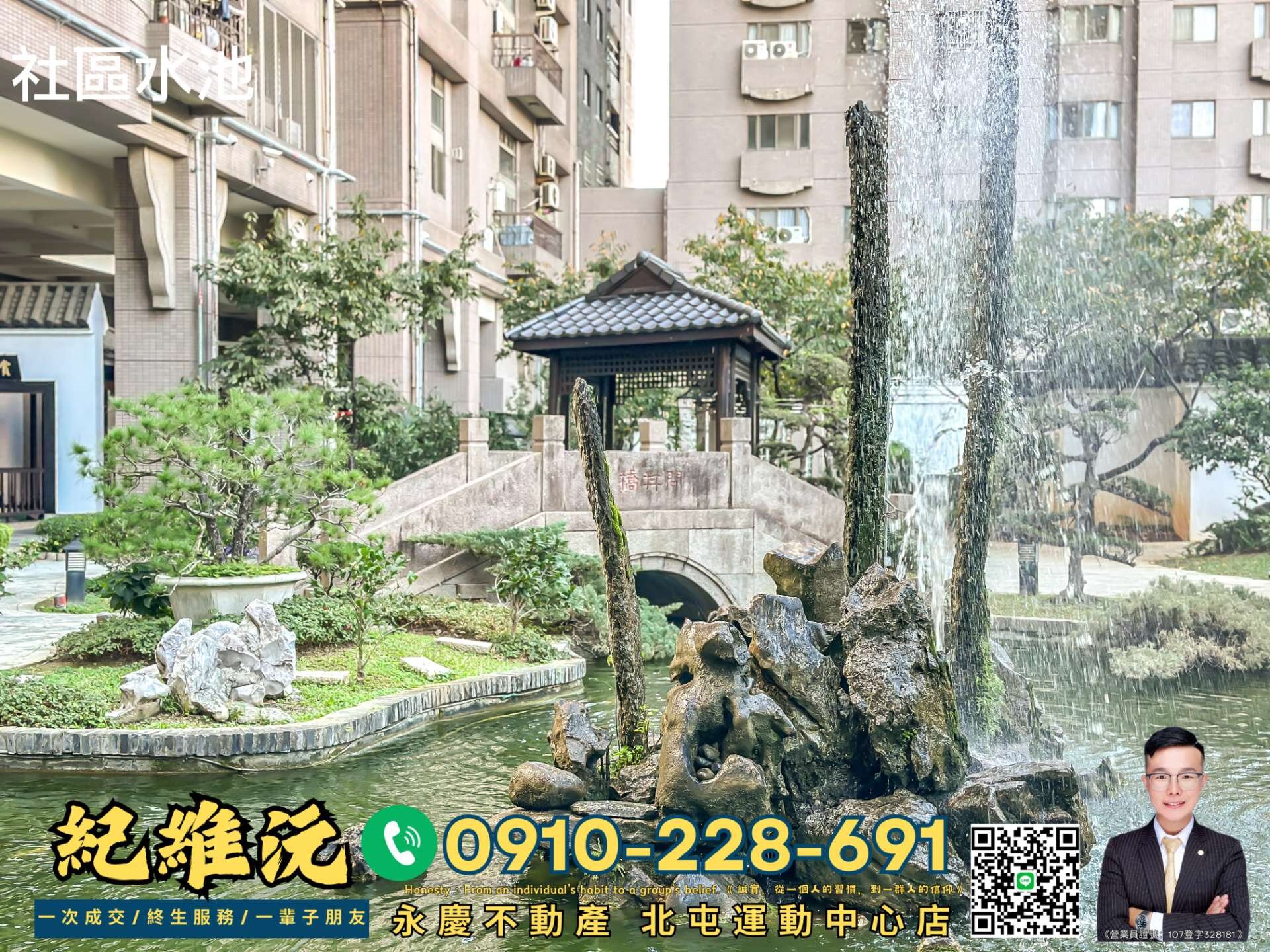 4️⃣ 全齡友善公設|中式庭院與水景造景