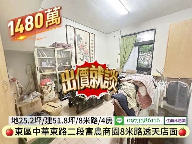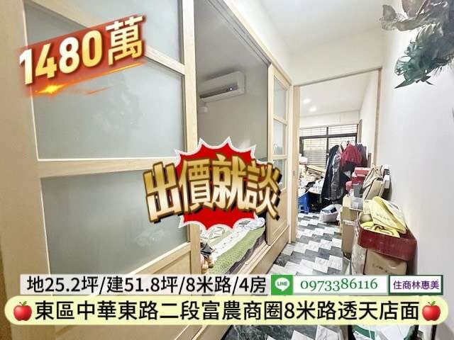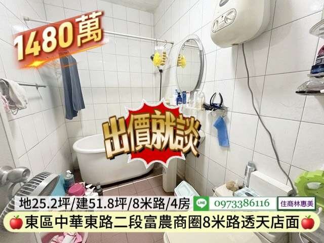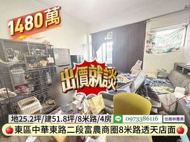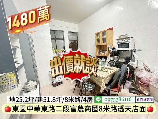 #東區中華東路二段南紡富農商圈孝親店面透天/售1480萬價可談/林惠美0973386116