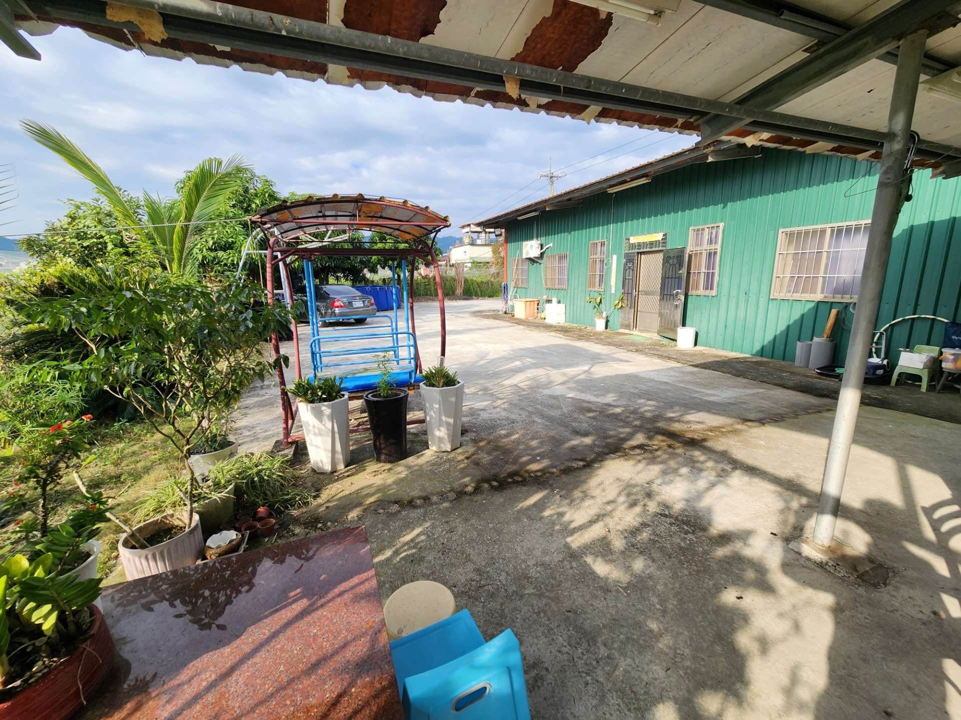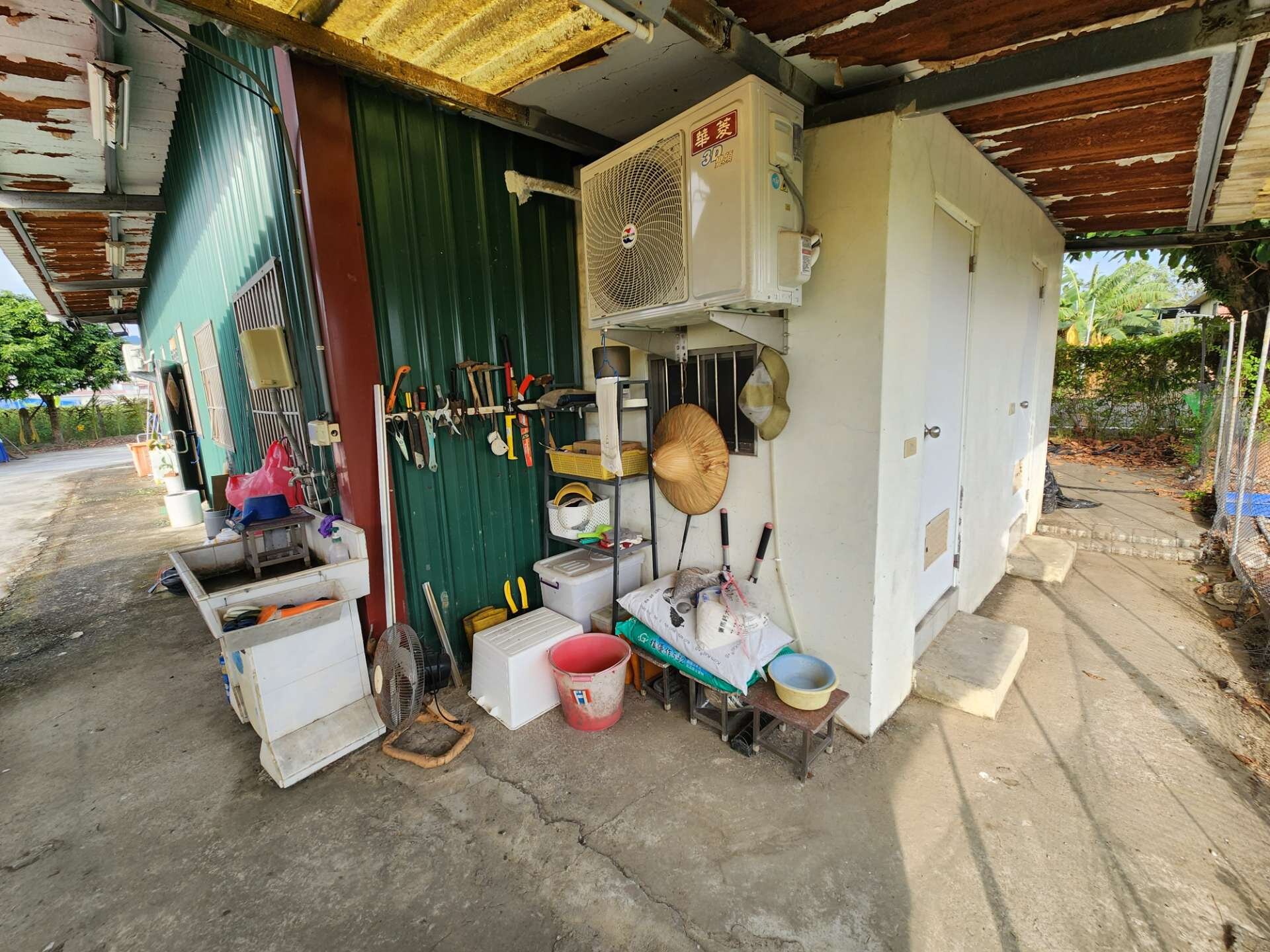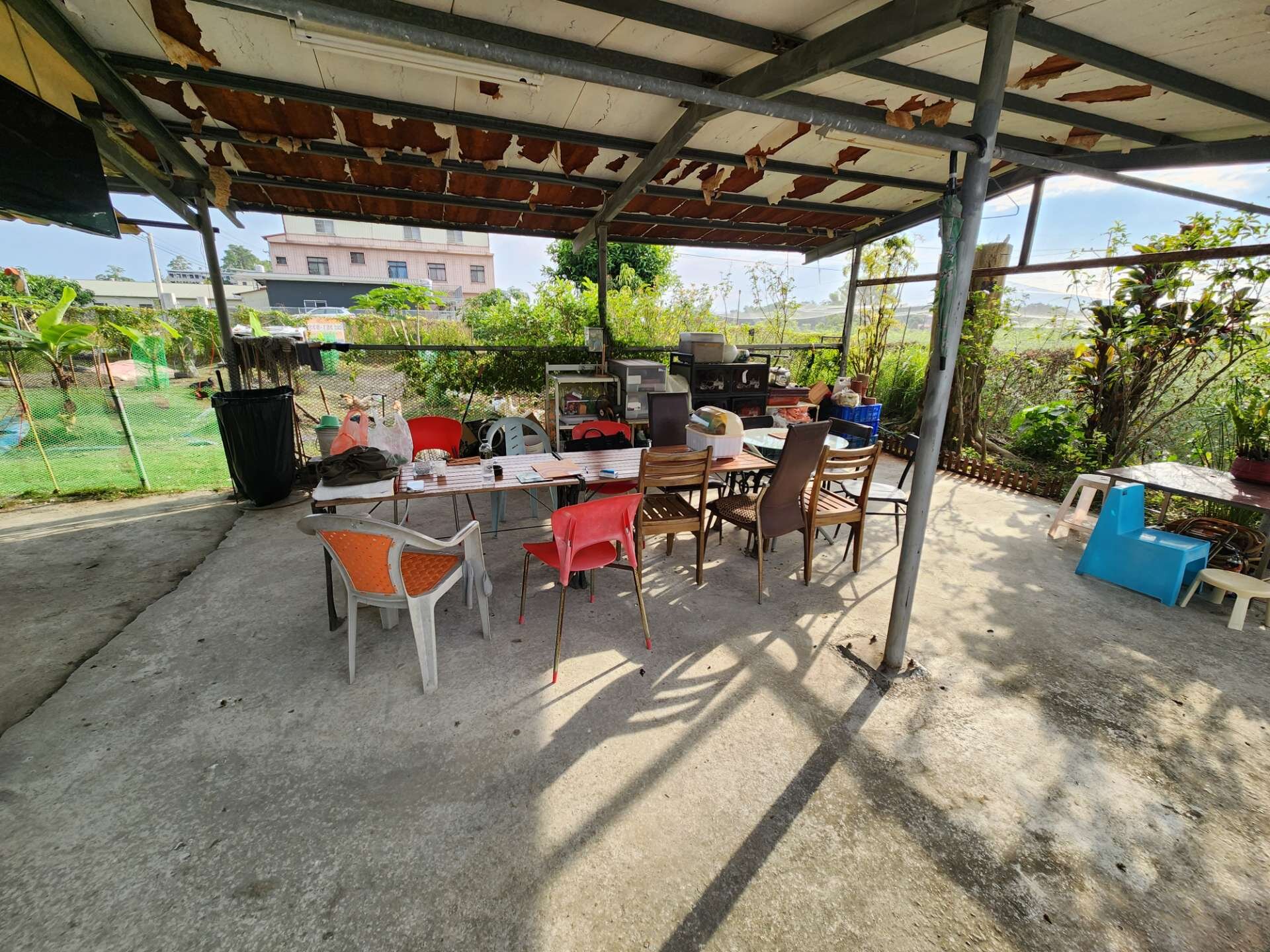 ● 地上有合法農舍一戶(鐵造),民國86年蓋好權狀建坪31坪,建物有兩間房間一廳一衛,居住舒適屋況良好。有自來水、有稅籍資料有電,不用整理馬上可入住。院子有魚池、籃球場、養雞場。