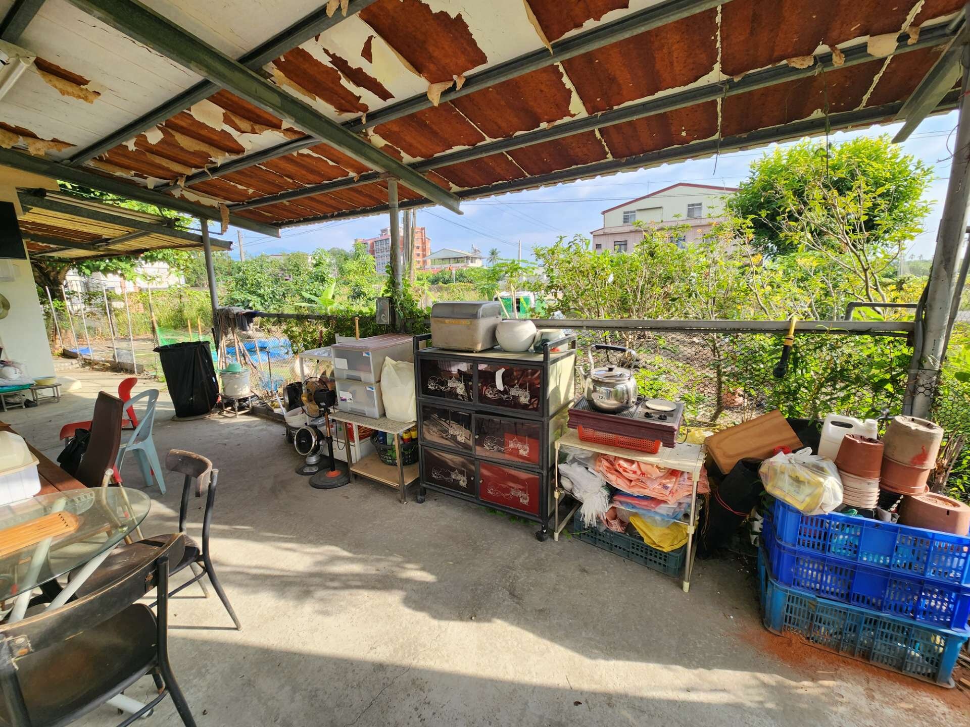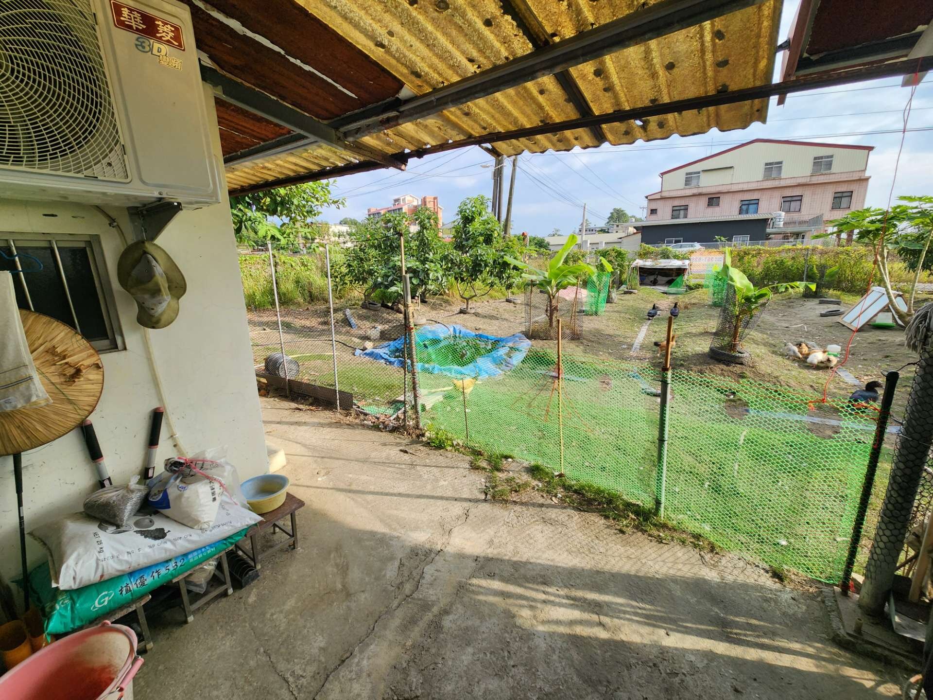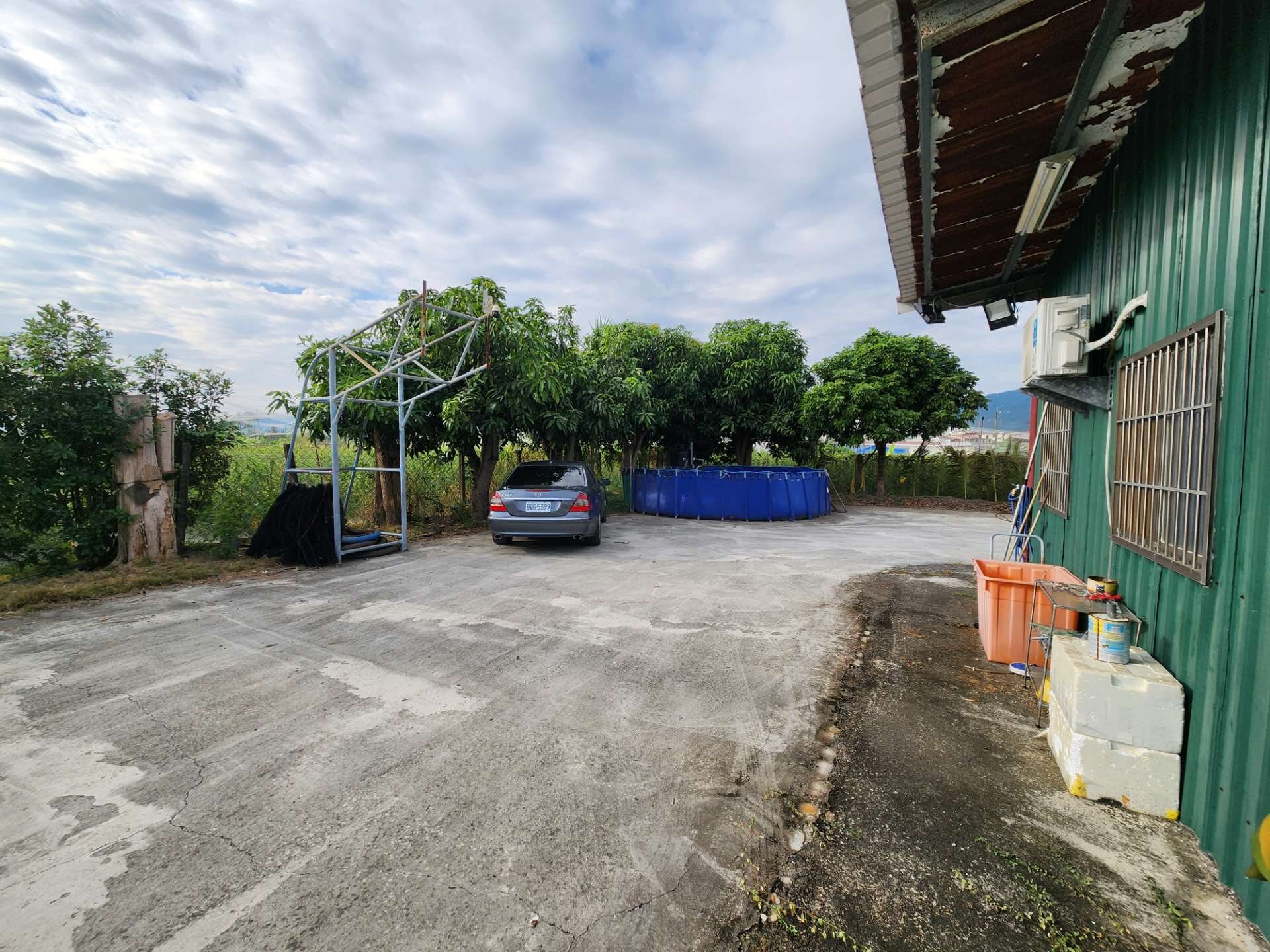 ● 地上有合法農舍一戶(鐵造),民國86年蓋好權狀建坪31坪,建物有兩間房間一廳一衛,居住舒適屋況良好。有自來水、有稅籍資料有電,不用整理馬上可入住。院子有魚池、籃球場、養雞場。
