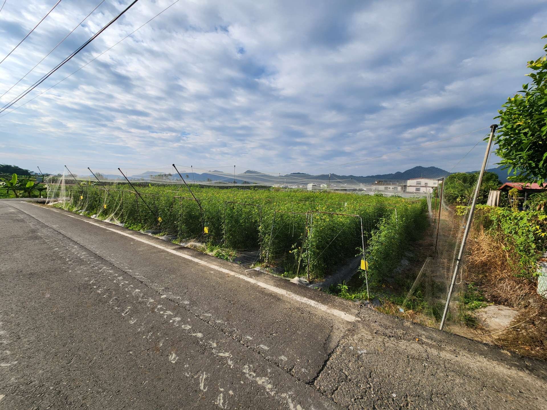 ● 本地三面環路,地形漂亮非常稀有,共1082坪。有排水溝,地勢高不淹水。自用約500坪,其餘目前租給當地農民栽種橙蜜番茄。