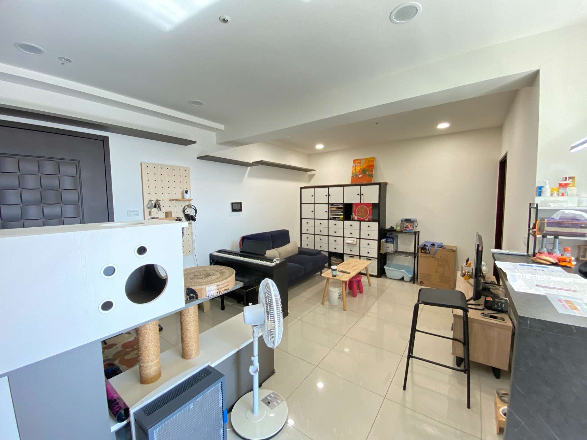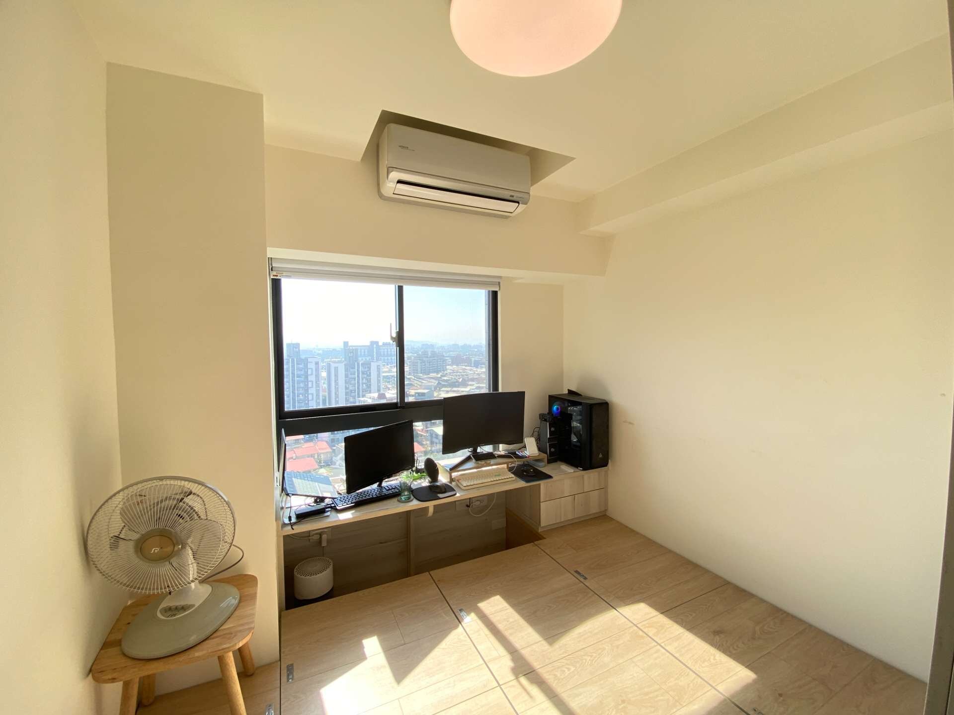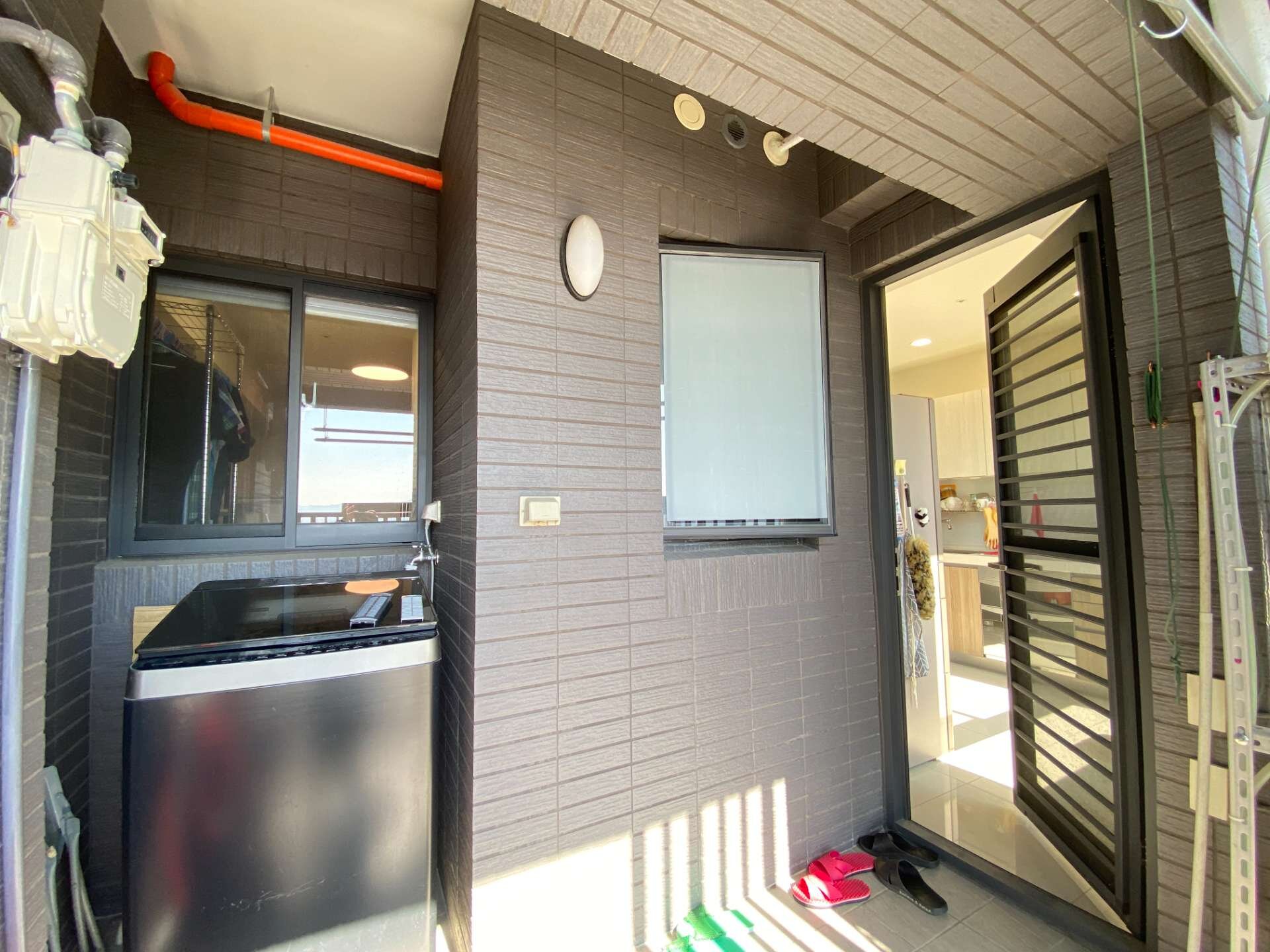 💯次頂樓朝南,採光無敵佳,白天開不開燈房間都一樣亮,原格局為川字型的大二房,屋主將約6坪大的主臥一半的空間客變為客廳空間,原主臥改為約三坪的房間但仍可放置一張雙人床也沒問題,入門右手邊設置系統櫃做為鞋櫃以及懸掛外出衣物使用,廚房流理台使用櫻花三機,衛浴開窗並且做乾溼分離,臥室間間開窗,近2坪的超大工作陽台,往外望去無限視野風景
